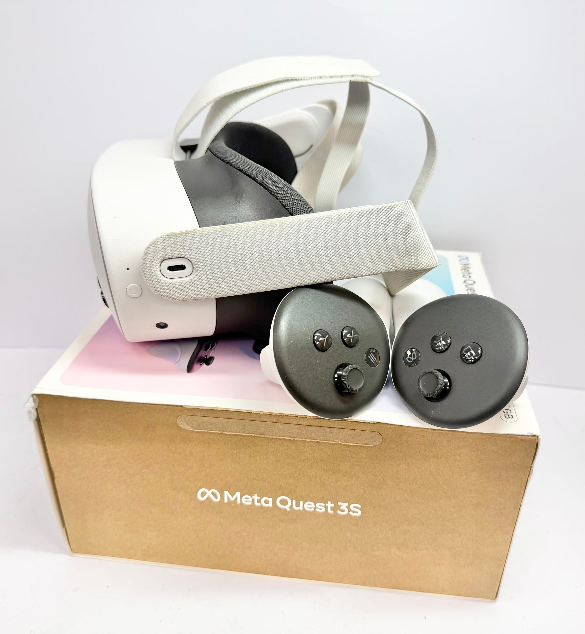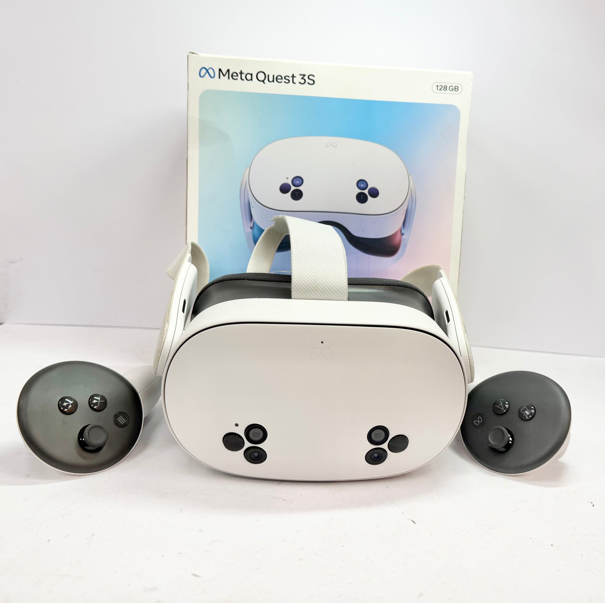 This meta quest 3s has 128gb storage, comes boxed and is in good condition, does have cosmetic wear however has been fully tested and factory reset ready to use.