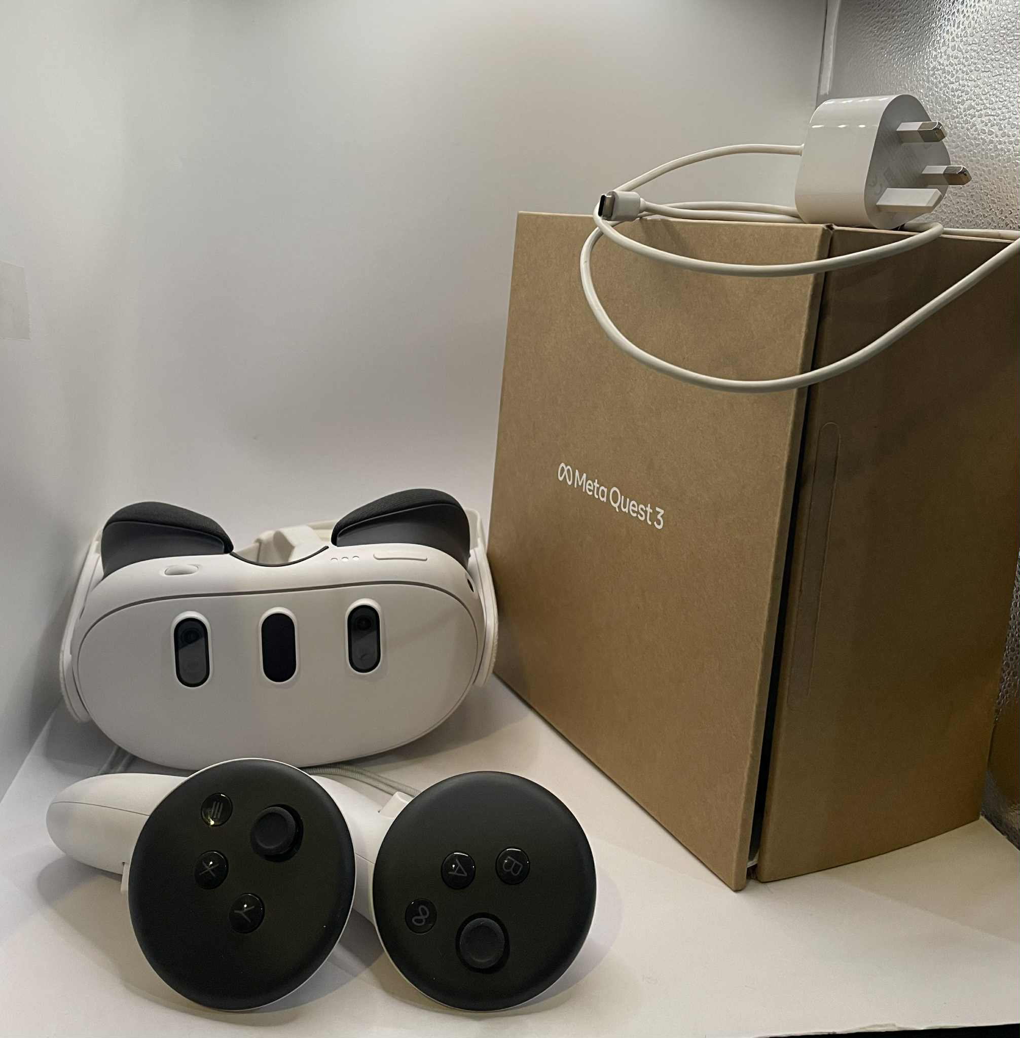 Expand your world with Meta Quest 3, a mixed reality headset that lets you jump into full immersion or blend physical and virtual worlds to transform your home into so much more. Redesigned from the inside out, it's our most powerful headset yet. With the world's best library of 500+ immersive games and experiences, there's something for everyone to discover. Comes with box and charger