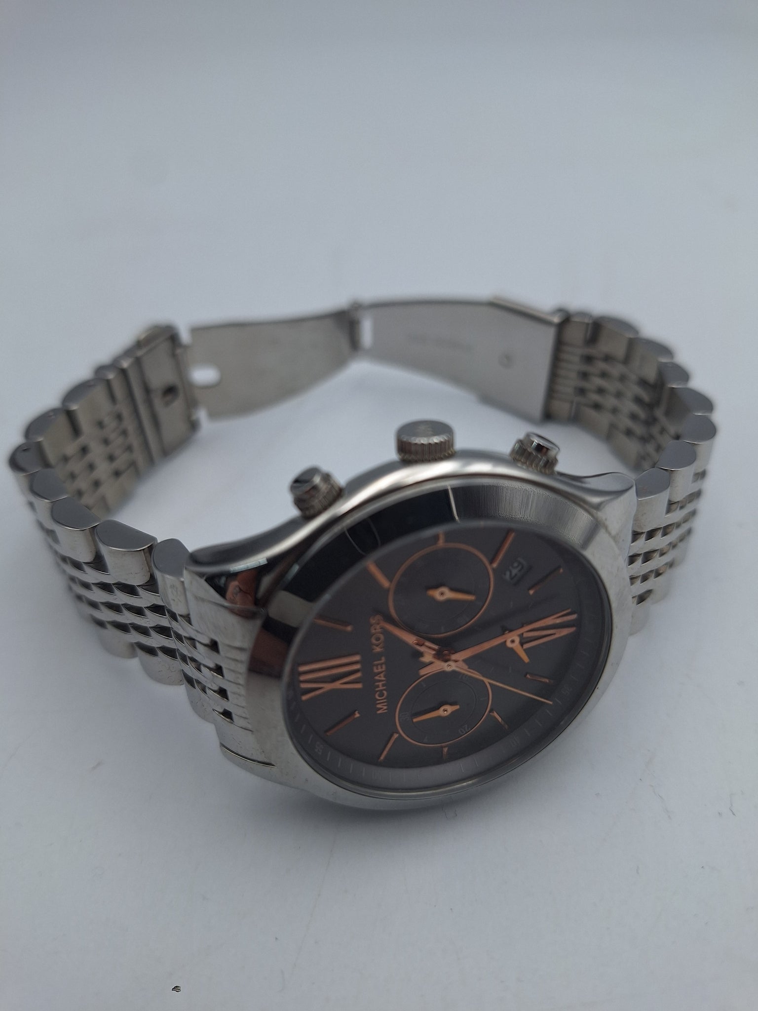 Michael Kors unisex 42mm quartz chronograph stainless steel watch with spare links and original box