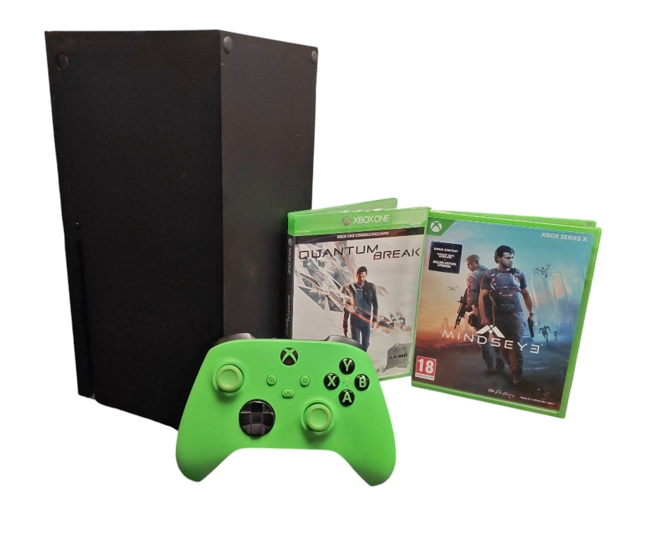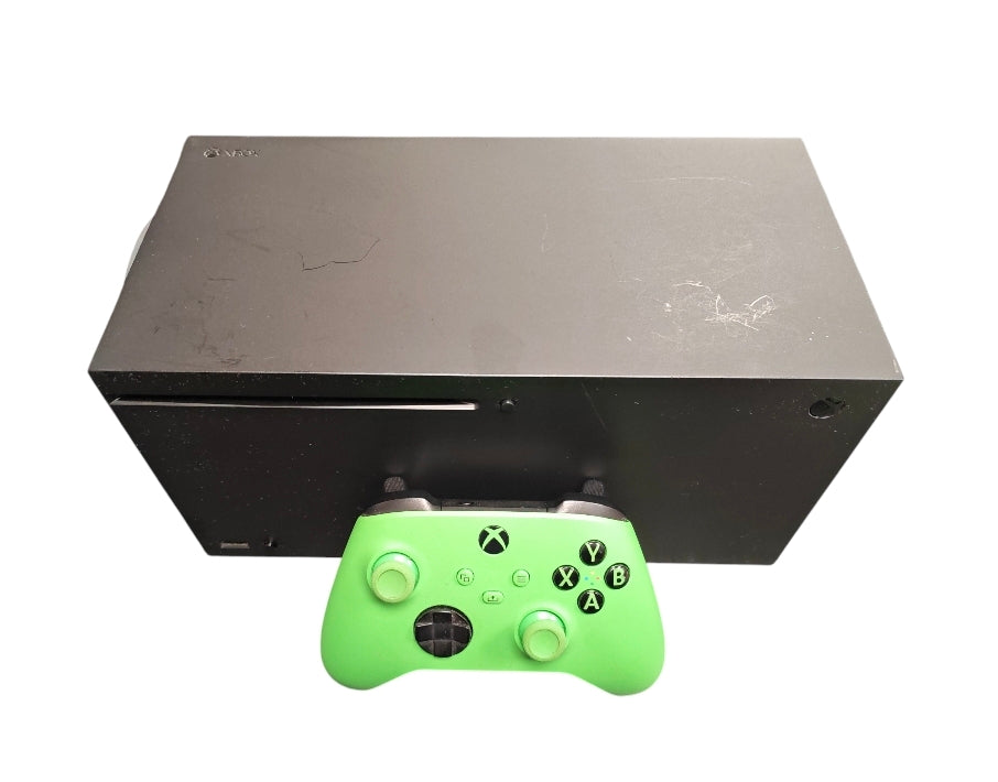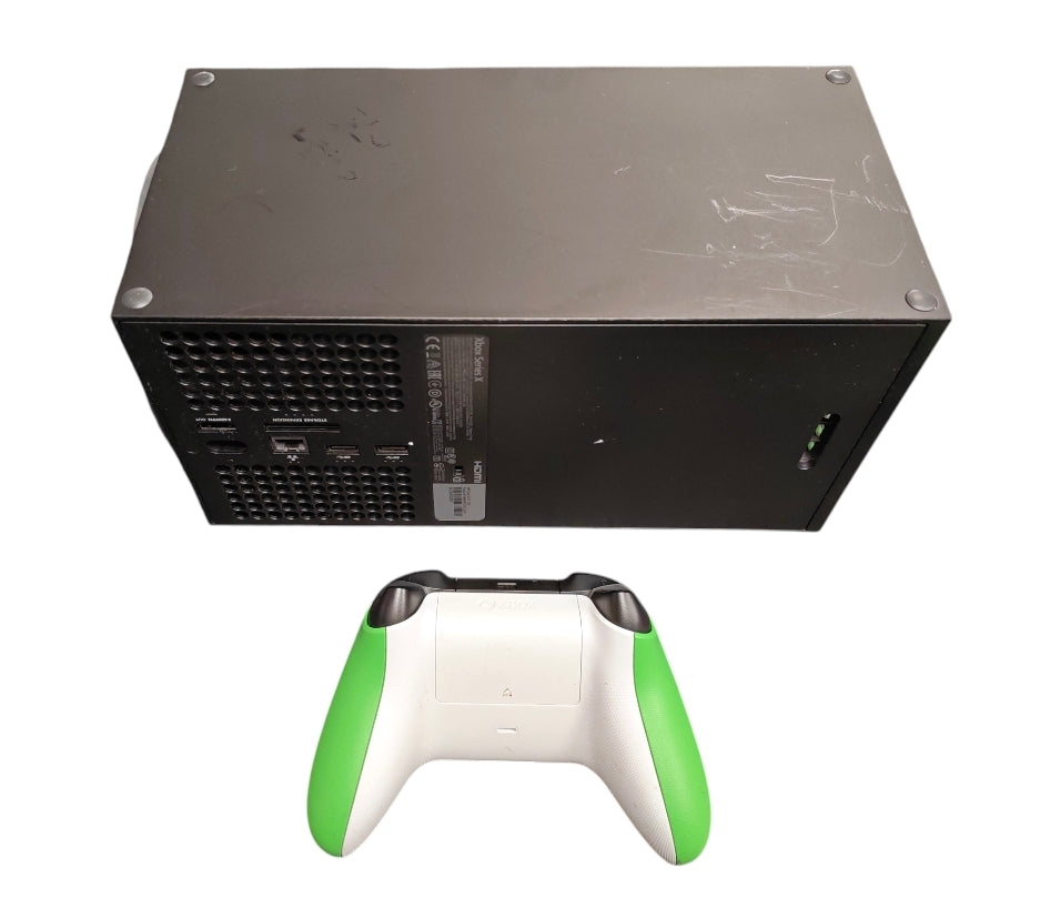 The Xbox Series X is Microsoft's most powerful current-generation gaming console, featuring 4K gaming at up to 120 FPS, an ultra-high-speed custom SSD for faster loading, and a 4K Ultra HD Blu-ray player. Processor: 8-core Custom AMD Zen 2 CPU at 3.8 GHz (3.66 GHz with SMT). Graphics: Custom AMD RDNA 2 GPU, 12 TFLOPS, 52 CUs at 1.825 GHz. Memory: 16 GB GDDR6. Storage: 1 TB custom NVMe SSD (expandable with proprietary expansion cards). Video Capability: True 4K gaming at up to 120 FPS, 8K HDR support. Audio Capability: Dolby Digital 5.1, DTS 5.1, Dolby TrueHD with Atmos, and 3D Spatial Sound. Optical Drive: 4K UHD Blu-ray drive. Backward Compatibility: Compatible with thousands of games across four generations of Xbox consoles.