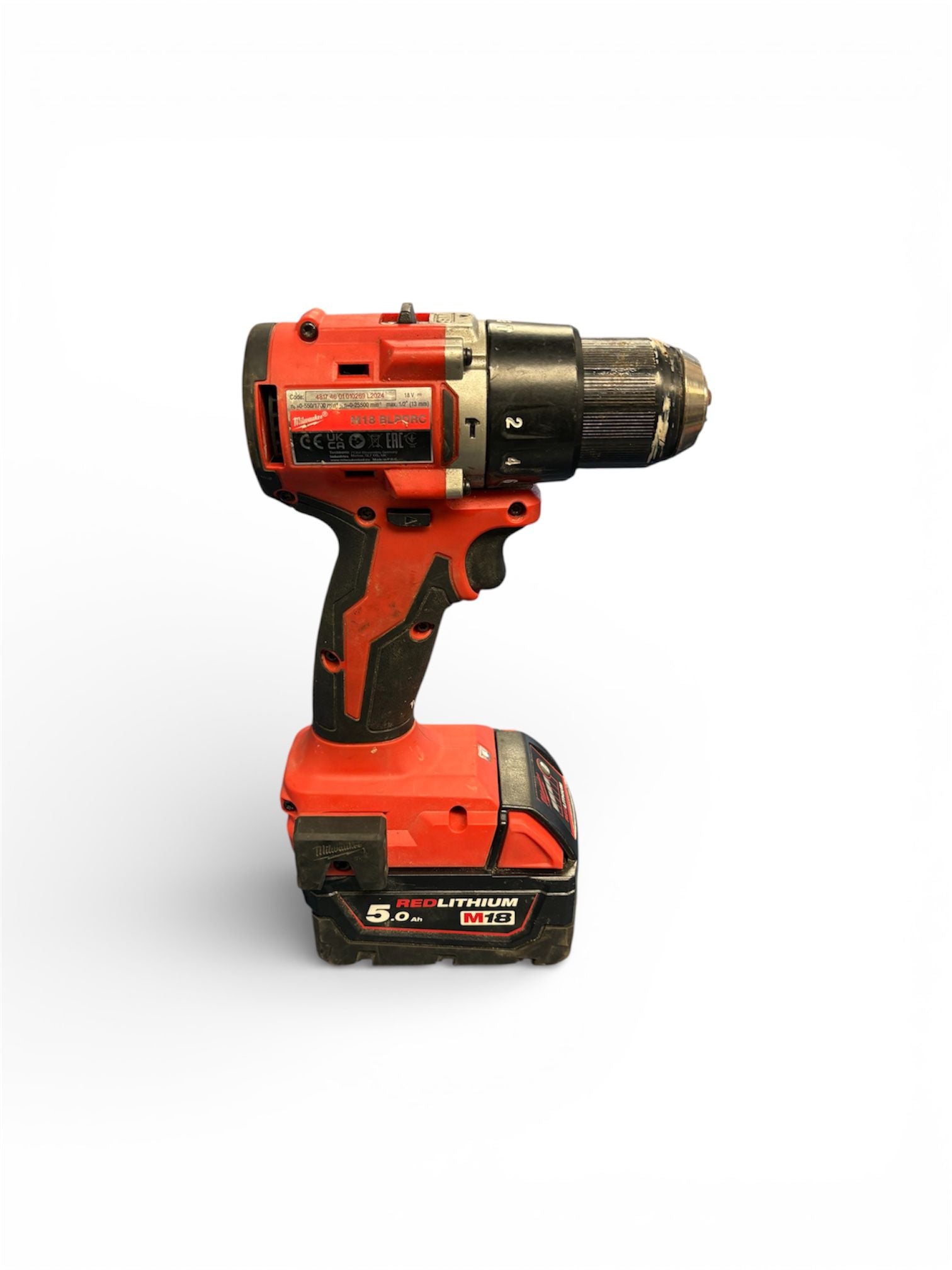 The Milwaukee M18 BLPDRC 18V Brushless Combi Drill is your go to tool for an enormous range of jobs at home and on site. This stunningly compact combi drill measures only 145mm from the back to the tip of the chuck which allows it to be used in smaller locations or difficult to access areas. This second generation drill has been optimised for expedited drilling and fastening which, with thanks to the inclusion of the Brushless Motor offers up to 1700rpm no load speed. The advanced 13mm heavy duty chuck allows for quick drill bits or screwdriver bits changeovers. The way that the chuck has been designed ensures exceptional bit retention which prevents unnecessary spinning or loss. With an industry leading best power to size ratio, the drill delivers an impressive 60.5Nm of torque for effective and efficient drilling. An onboard fuel gauge lets you monitor battery capacity while the bright LED work light lets you keep a clear view on the area you’re working. This powerful tool includes two of Milwaukee’s exclusive technologies all for your benefit. The REDLITHIUM Battery packs which provide exceptional power for longer; and the REDLINK PLUS overload protection – maximising the power you need when you need it. At the heart of this compact combi drill is the brushless motor that allows you to use the tool efficiently. As part of the design, the tool utilizes every bit of battery power when you need, all while reducing the need for ongoing maintenance. The technology in creating a brushless motor system allows for perfect symmetry between battery power and usage ensuring you get all the power you need, when you need it. comes with one battery NO CHARGER