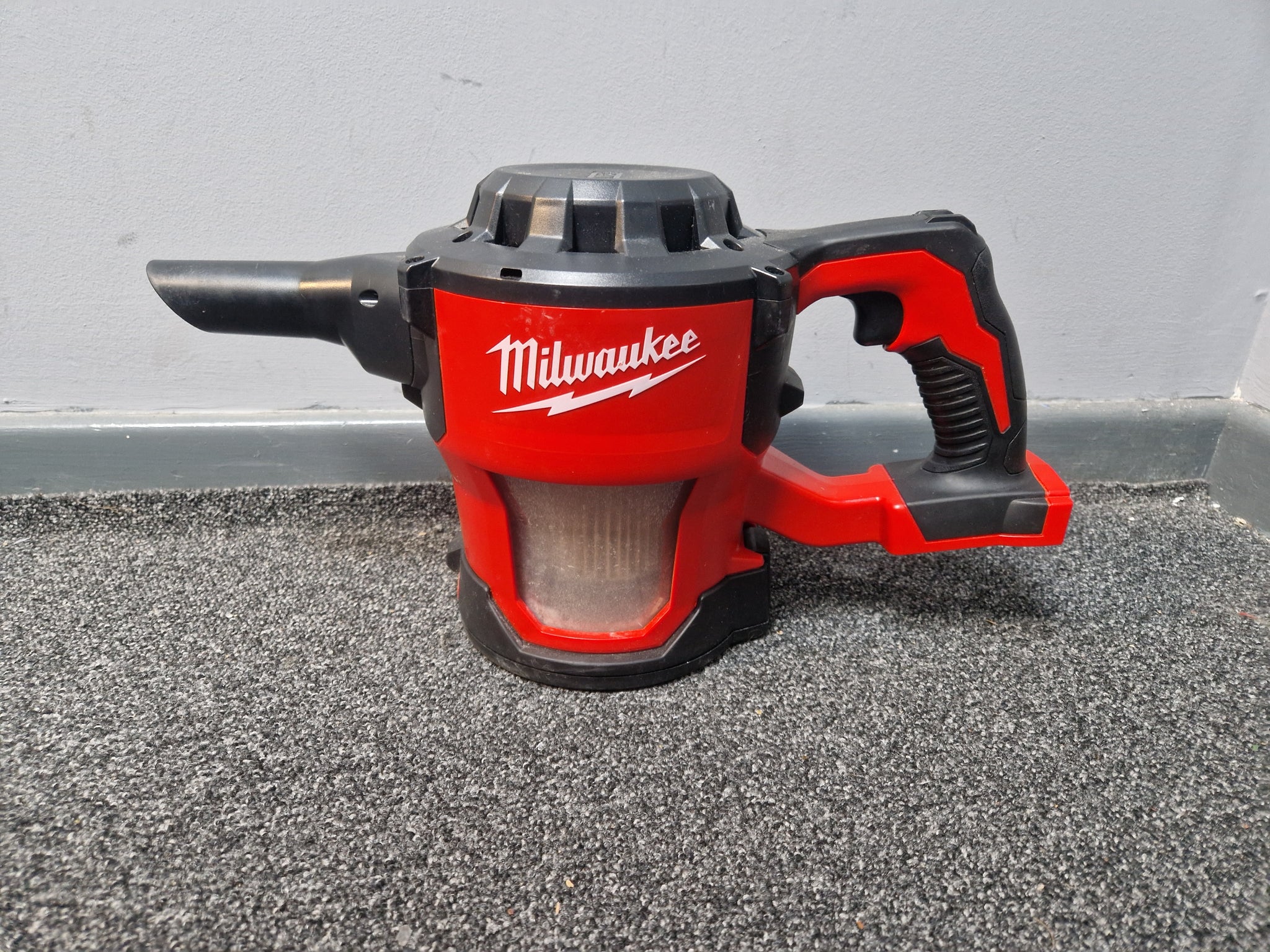 Milwaukee M18CV 18v Compact Hand Vac Body Only has up to 23 mins run time on a 5.0Ah battery. It works on any of the Milwaukee 18v batteries. It features a lock on switch, secure canister lock, 6 litre capacity and versatile accessories. Please note this machine is not M class. HEPA filter will collect 99.97% of airbourne particles up to 0.3 microns. Lock on switch. Versatile accessories. The Hoover has some signs of use and couple of scuffs underneath but all cosmetic. Body only has no other attachments other than what is in the pictures Battery not included