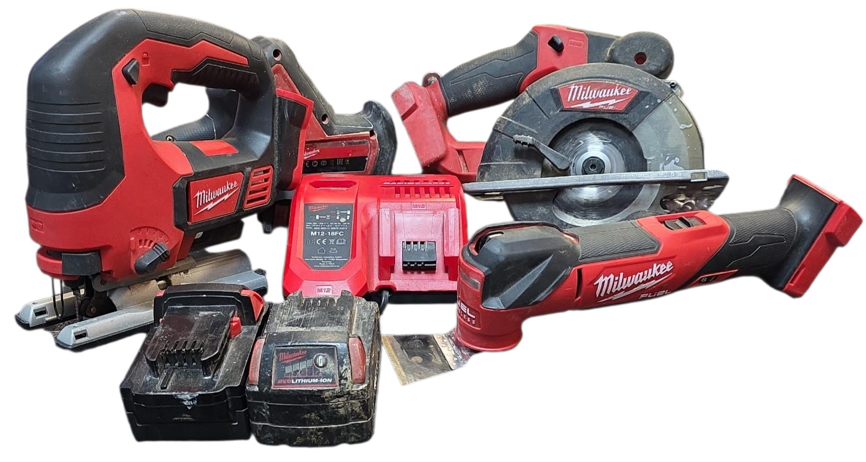 Good used condition, comes unboxed with x2 batteries and one charger. Includes - Hackzall, Circle Saw, JigSaw and Multi-Tool. Fast Shipping!