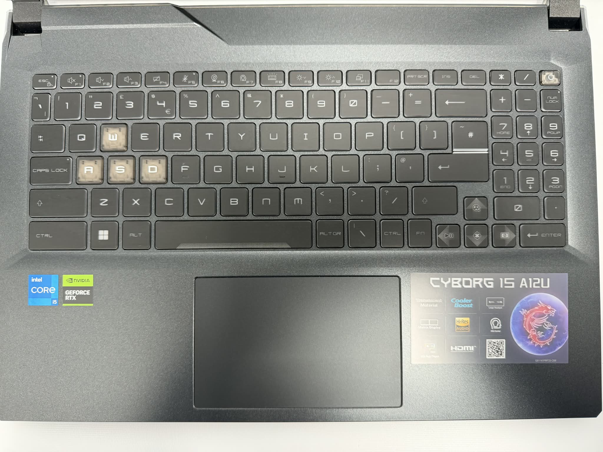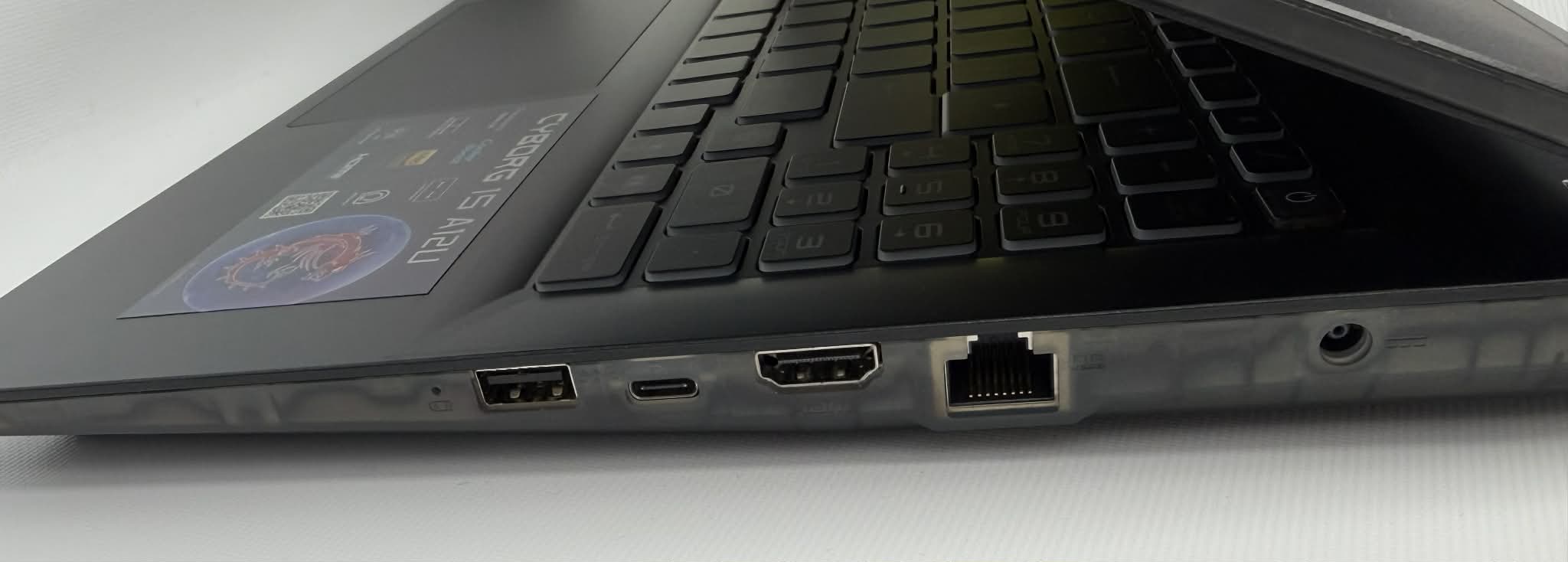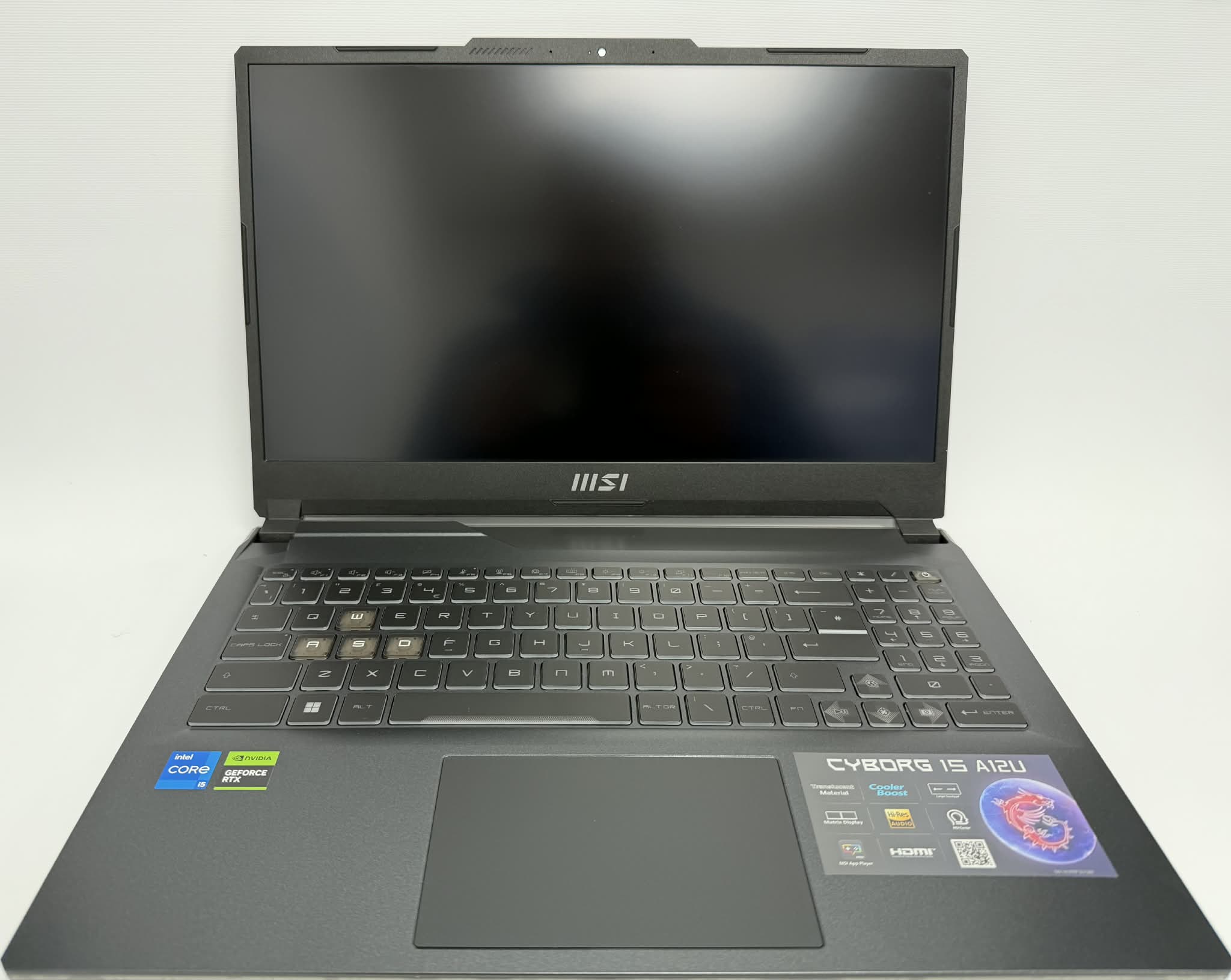 The MSI Cyborg 15 A12U gaming laptop is in Grade B due to visible cosmetic wear, including scratches on the back cover. These marks are purely external and do not affect the performance or functionality of the device. The laptop remains structurally sound, with no visible cracks or major damage, and the hinges appear firm and well-aligned.