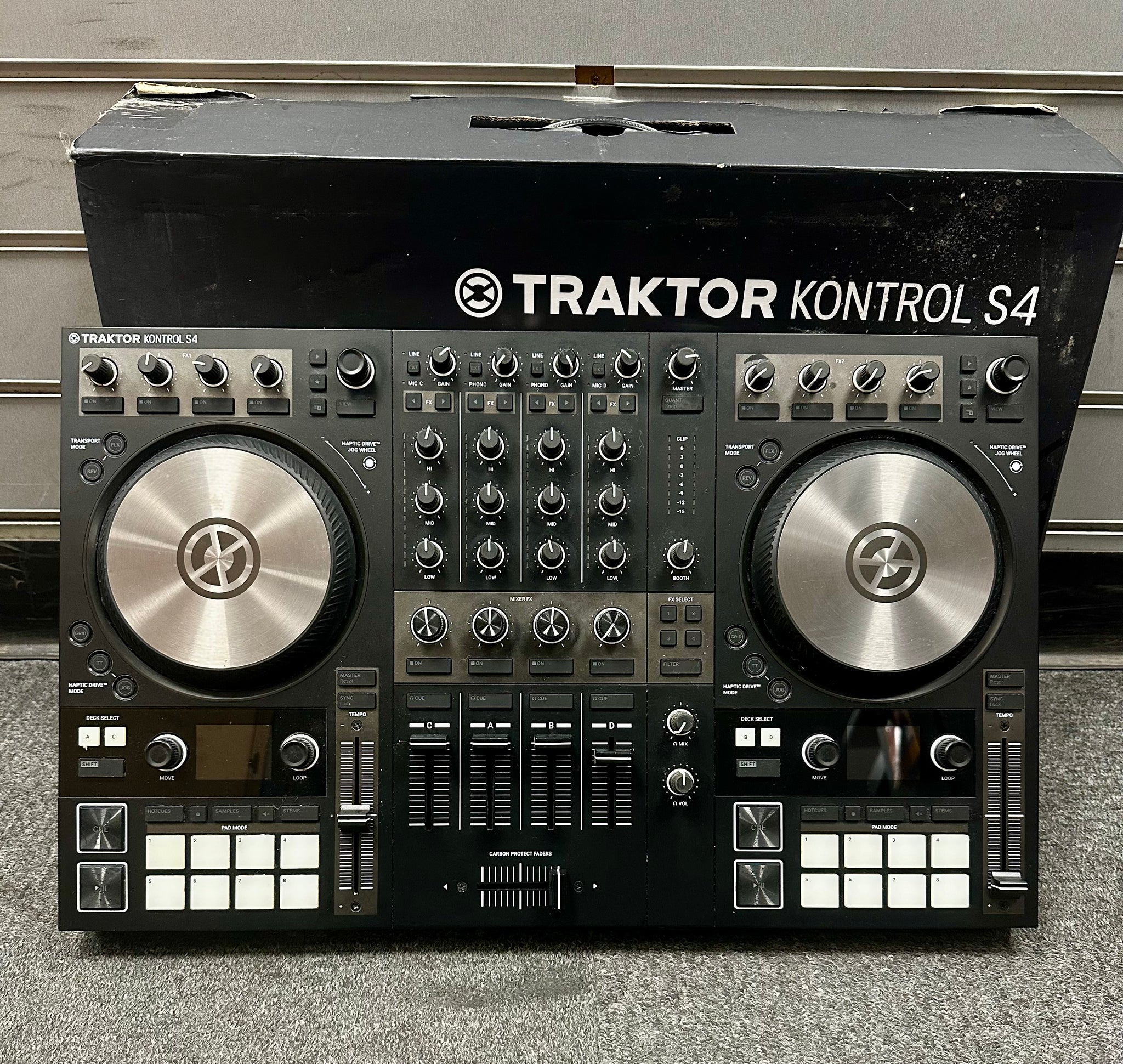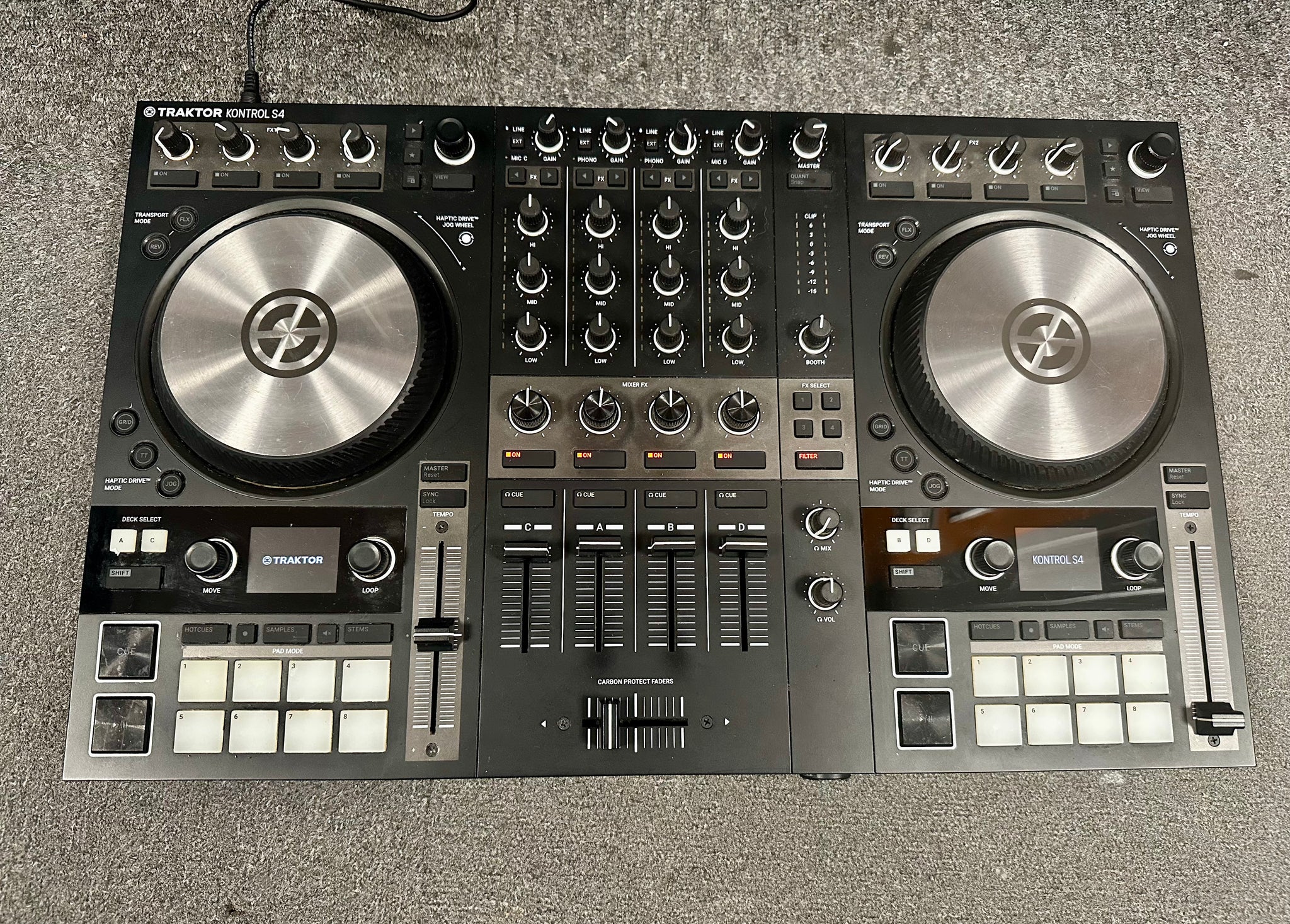 Mix your own way with versatile motorized jog wheels that transmit cue points and more direct to your fingertips Intuitive visual feedback from RGB LED rings and high-res color displays Integrated pro-grade audio interface with external inputs on each channel, headphone outs, mic inputs, and DVS support RAKTOR KONTROL S4 lets you connect with your tracks in entirely new ways: Not only do its motorized jog wheels spin and react to nudging, scratching, pitch-fading, and backspins, they transmit cue points, loop markers, and more direct to your fingertips. And with RGB LED rings and high-res color displays keeping all the info you need front and center in the booth, everything you need is right where you need it – so you’re free to focus on your mix. Motorized jog wheels spin according to track tempo and deck behavior Nudge records and slow them down using the rim of the jog wheel while mixing, for an old-school turntable feel Ride the touch-sensitive top plate slipmat-style, or spin the deck back for peak-time rewinds