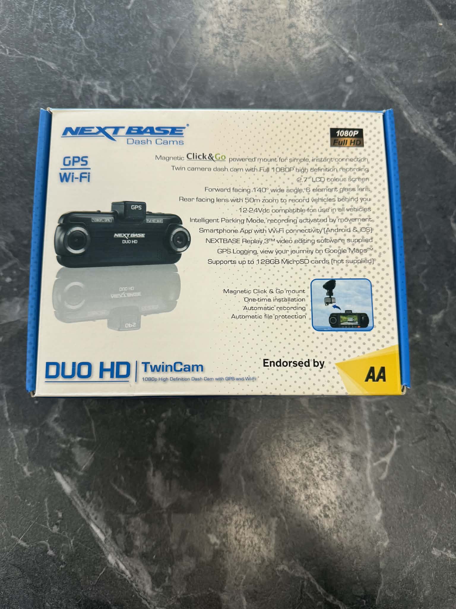 This is a Pre-Owned Next Base Duo HD Dashcam with GPS and Wi-Fi- Black. It is in very good condition with slight little marks on the screen and body of this but no major scratches or exterior damage to the body. it has been fully tested with the cables included are only for the in car use but it is in very good condition with no indication of damage or faults. Although it comes boxed, it will be very well wrapped for the delivery! Free UK Delivery Any item over £50 will be sent out Royal Mail Special Delivery or Fedex (depending on size and weight of package) for next working day delivery Any items under £50 will be sent out by Royal Mail 2nd Class for delivery between 3 and 5 working days All orders made before 11AM will be sent out the same working day Please note that deliveries to Ireland, Highland of Scotland and the Isles may take longer to arrive.
