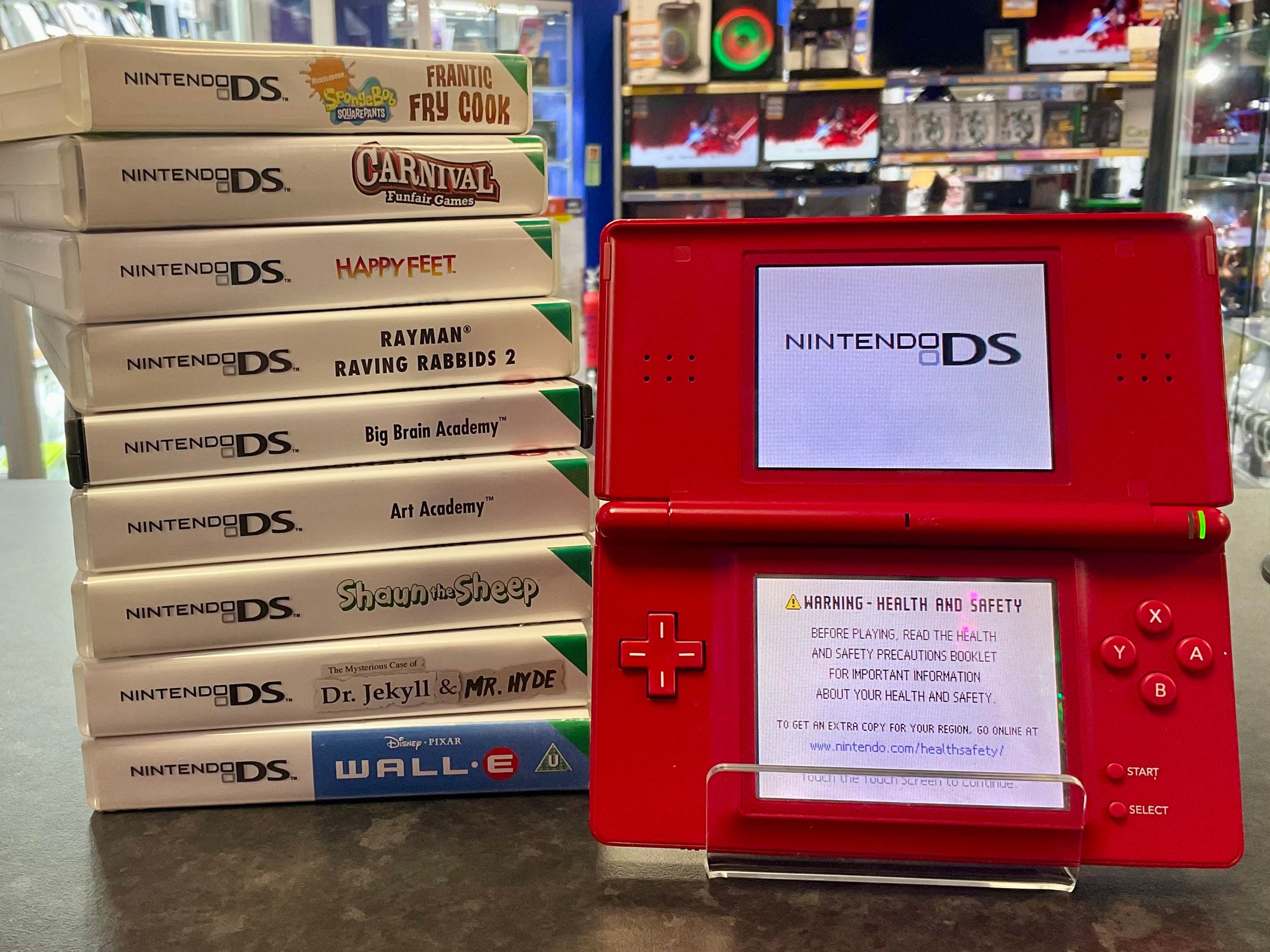 Here we have a Nintendo DS Lite bundle with 9 games. This comes with the power supply and is unboxed in good condition. *** The games included are : SpongeBob SquarePants Frantic Fry Cook, Carnival Funfair Games, Happy Feet, Rayman Raving Rabbids 2, Big Brain Academy, Art Academy, Shaun the Sheep and The Mysterious Case of Dr.Jekyll & Mr.Hyde. *** For any queries please call our Chorley store direct Mon-Sat on 01257 752333.