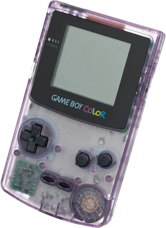 Nintendo Game Boy Colour Clear Purple & pokemon pinball Unboxed Preowned With 52 brilliant colors simultaneously displayed on Game Boy Color's small portable screen, your games look better than ever! Full color portable gaming is an awesome advance, but Game Boy Color does more than improve the appearance of your games. Game Boy Color is twice as fast as the regular Game Boy, which allows programmers to crunch more data and produce more sophisticated games. For you, this means faster action, more advanced AI, and increased realism. But you don't have to go out and buy all new games to enjoy playing in color! You can play any of the 450 original Game Boy titles, and Game Boy Color will transform them to color from black and white! When you put a pre-existing Game Boy game into Game Boy Color, you will be able to choose from one of twelve default color palettes on the Game Boy Color start-up screen. New games designed specifically for Game Boy Color are sharper and even more vivid than colorized black and white games, with a full spectrum palette of more than 32, 000 colors. Game Boy Color is compatible with both the Game Boy Camera and the Game Boy Printer.