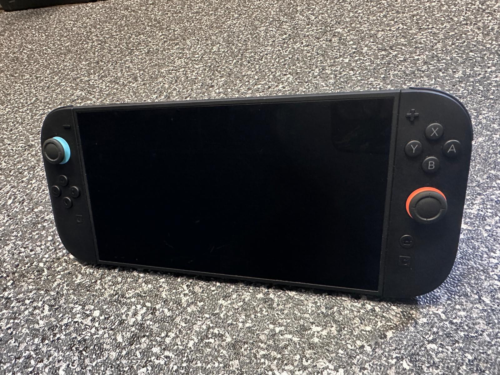 Switch in good condition, there are a few play marks with some light scratches to screen but nothing that affects use. unboxed but does come with dock, power supply and joycon attachments