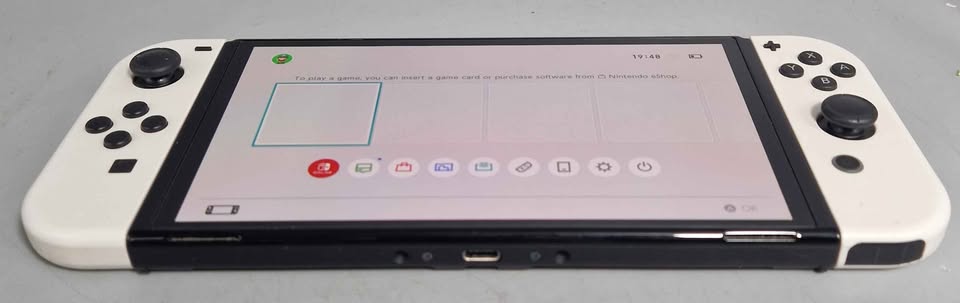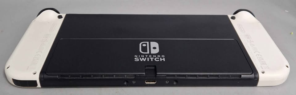 Meet the newest member of the Nintendo Switch family The new system features a vibrant 7-inch OLED screen, a wide adjustable stand, a dock with a wired LAN port, 64 GB of internal storage, and enhanced audio. Play anytime, anywhere, with anyone. Nintendo Switch can transform to suit your situation, so you can play the games you want, no matter how busy life may be. Pick it up and play with the Joy-Con controllers attached. Nintendo Switch (OLED model) includes a vibrant 7-inch OLED screen with a slimmer bezel. The large screen's vivid colours and high contrast deliver a rich handheld and tabletop gaming experience, bringing games to life whether you're racing at top speed or squaring off against enemies. Flip out the stand and hand a controller to another player to share the screen and enjoy competitive or co-operative multiplayer, anytime and anywhere. Nintendo Switch (OLED model)'s wide adjustable stand can be set to your preferred viewing angle for comfortable gameplay in tabletop mode. Gather around a big screen and enjoy gaming with a crowd. Dock your Nintendo Switch to enjoy HD gaming on your TV. The dock included with Nintendo Switch (OLED model) features two USB ports, an HDMI port for connecting to a TV, and a new wired LAN port, allowing for more stable online play when playing in TV mode. Save games to your system with 64 GB of internal storage & Enjoy enhanced audio from the system’s onboard speakers.
