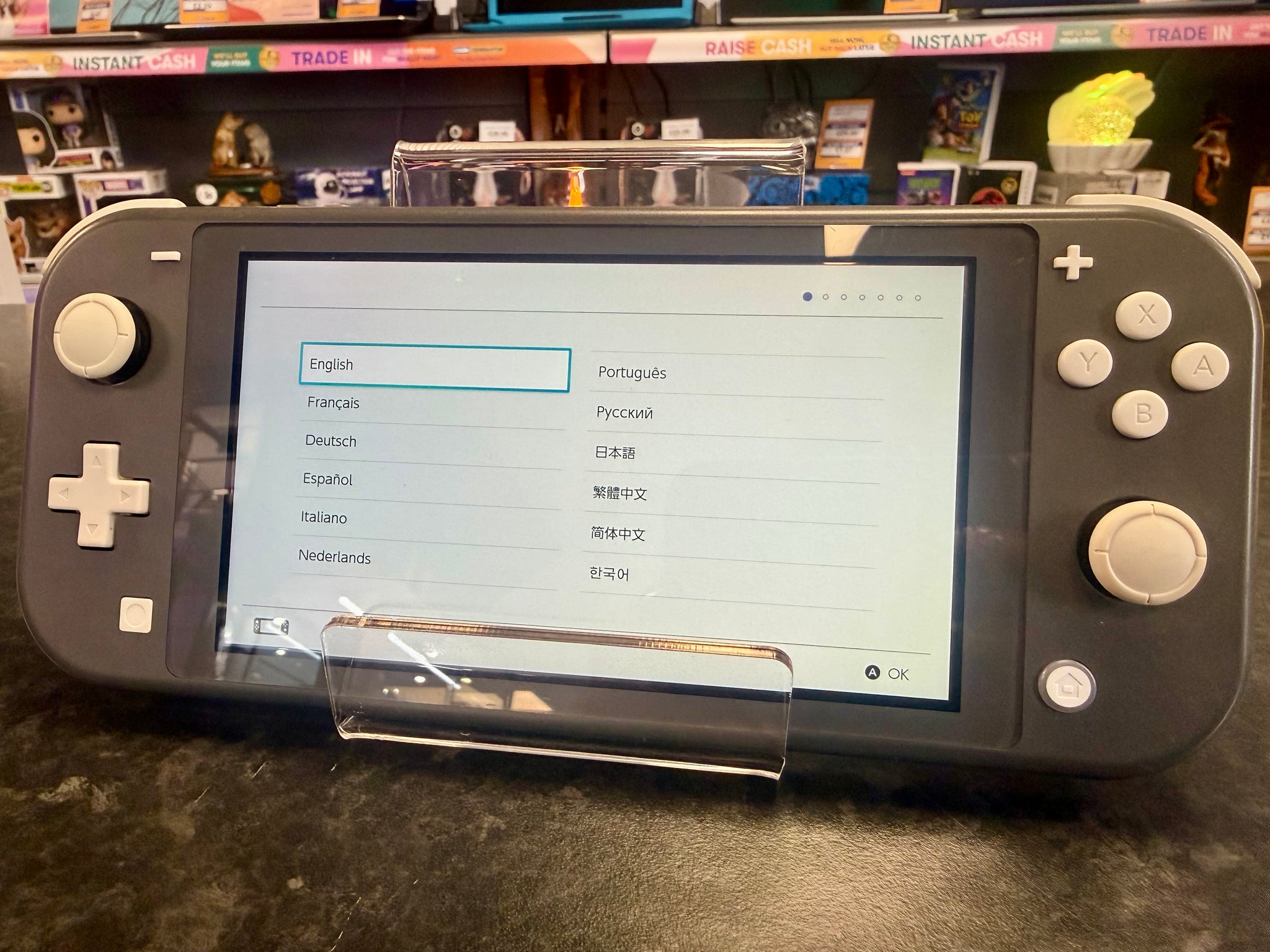 Nintendo Switch Lite Console in grey featuring 32GB storage. ***This is in good condition with light cosmetic wear on the body along with slight discolouring on the triggers. Comes with a type-c charging cable. ***For any queries please call our Chorley store direct from Mon-Sat on 01257 752333.