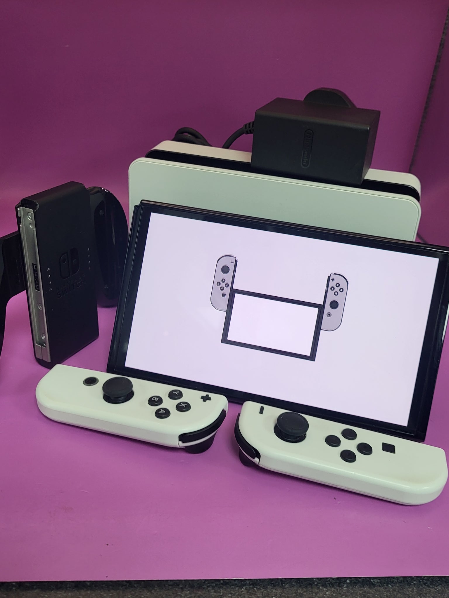 Nintendo switch OLED - complete with all its original components - no box very slight signs of use on white joycons - but all in above average condition