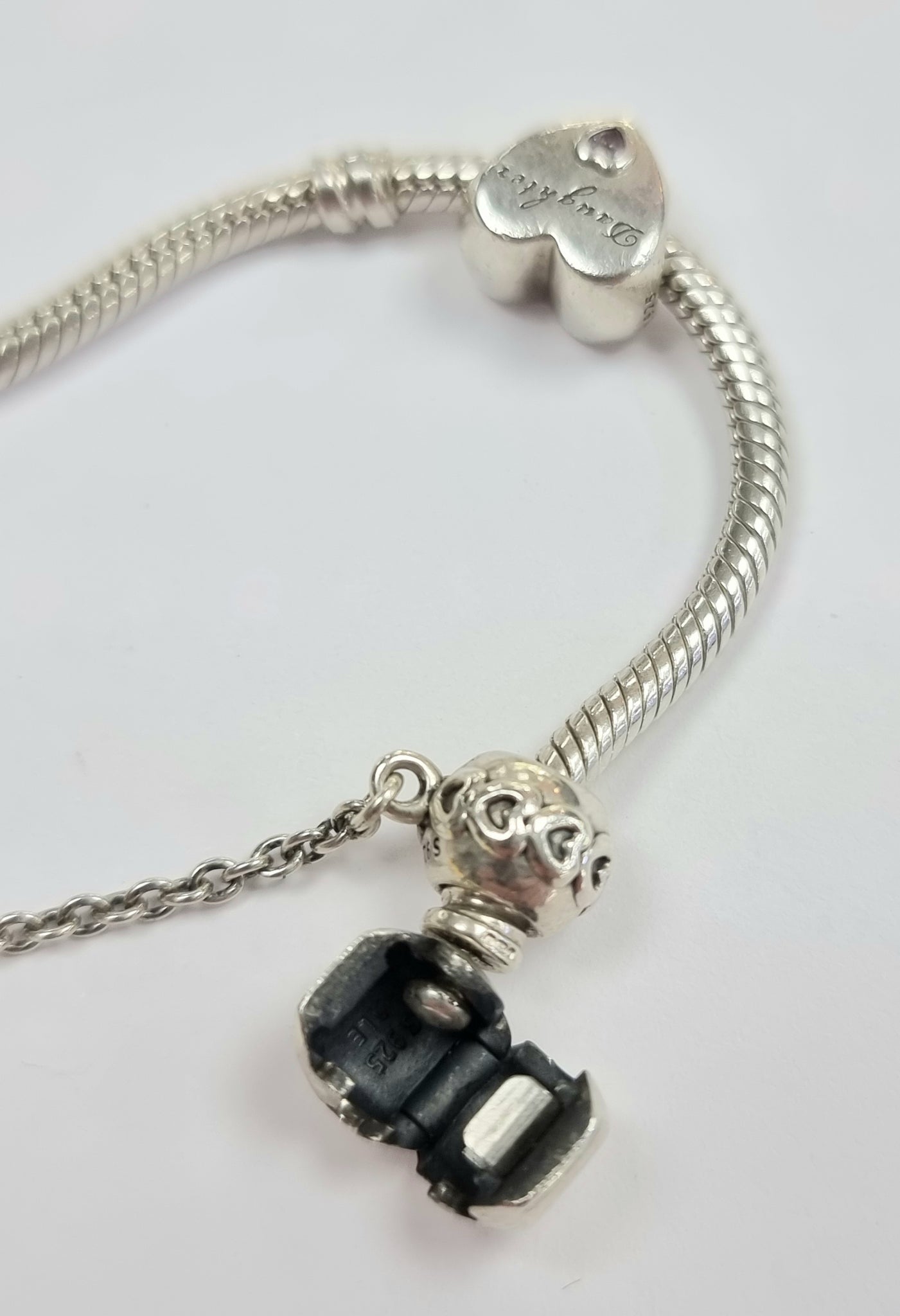 Pandora Bracelet with charms and safety chain 18cm