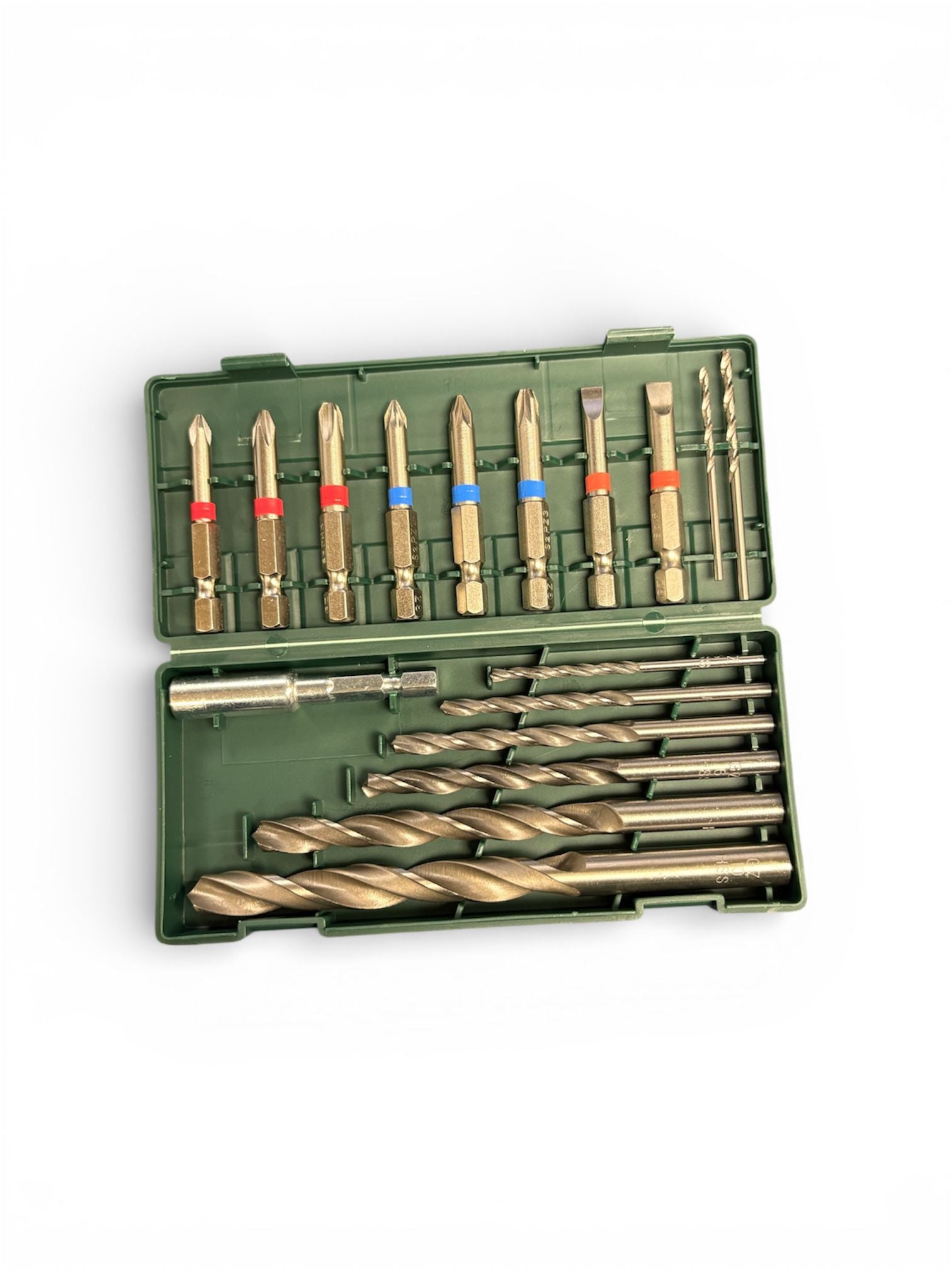Powerful motor with 2 speeds, 2 bit holders on the device Maximum torque: 45 Nm Typing frequency: 1/2 Speed: 400/1400 rpm Quick-release chuck with radial locking and metal sleeve, freely adjustable rotation speed with Quickstop function, integrated LED work light, soft grip equipment, practical belt clip with bottle opener function, max. Drilling diameter: 30 mm in wood / 13 mm in steel