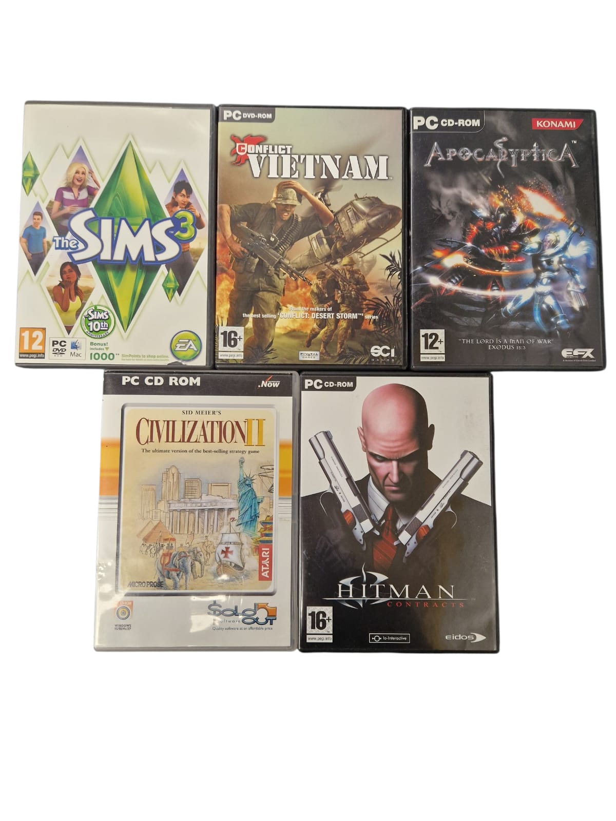 Bundle contains Sims 3, Conflict: Vietnam, Apocalyptica, Civilization 2, and Hitman: Contracts