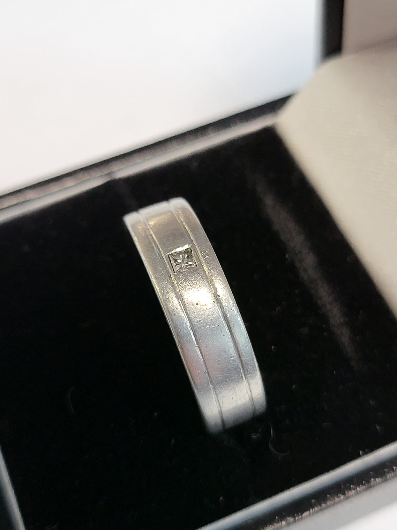 Platinum (950) Band Ring with Clear Stone - Size R - 13.2g