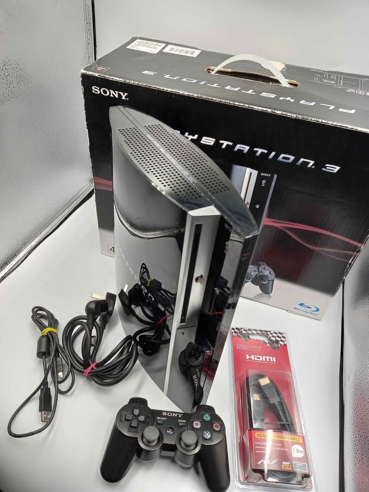 The 40GB PlayStation 3 (PS3) was a slimmer, lower-cost model released in late 2007, featuring a 40GB hard drive, Blu-ray player, Wi-Fi, Ethernet, and HDMI output. Storage: 40GB Serial ATA Hard Drive. Processor: IBM Cell Broadband Engine. Graphics: Nvidia RSX GPU. Memory: 256MB XDR Main RAM & 256MB GDDR3 VRAM. Disc Drive: Blu-ray, DVD, CD playback. Connectivity: HDMI, AV Multi Out, Digital Optical Out, Ethernet (Gigabit), 2x USB 2.0 ports, Wi-Fi (802.11b/g), Bluetooth 2.0. Video Output: Supports 480i, 480p, 720p, 1080i, 1080p. Controller: Sixaxis wireless controller (no rumble).