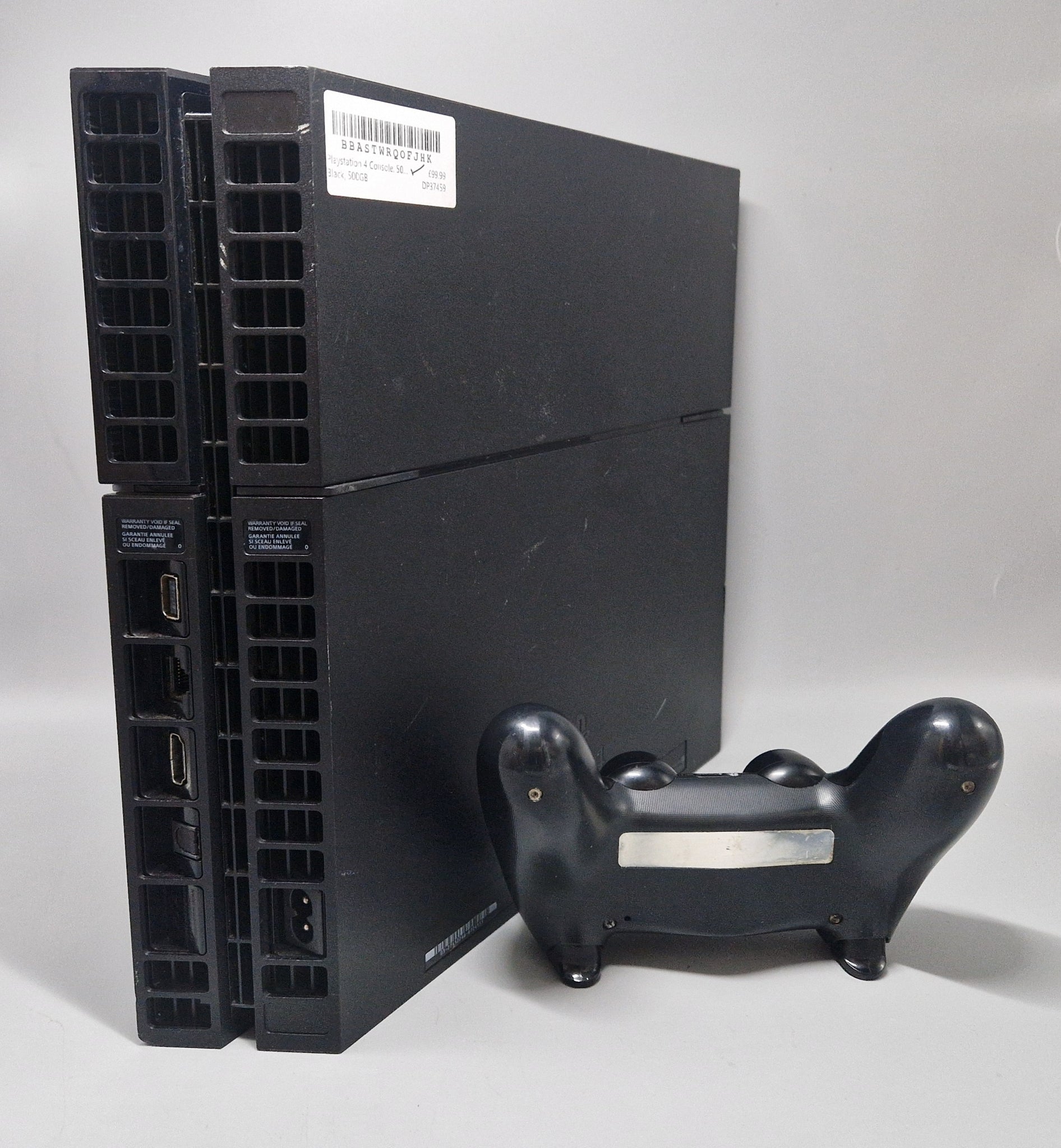 Playstation 4 Console, 500GB Black, Discounted perfect working condition, fair physical condition, shell has some scratches and age related wear, removable part of shell has crack in it and comes off easier than it should, controller has some of te rubber worn off on the sticks and the headphone jack is blocked with glue nothing that effects performance Product Description The Best Place to Play The PlayStation 4 is the best place to play with dynamic, connected gaming, powerful graphics and speed, intelligent personalization, deeply integrated social capabilities, and innovative second-screen features. Combining unparalleled content, immersive gaming experiences, all of your favourite digital entertainment apps, and PlayStation exclusives, the PS4 centres on gamers, enabling them to play when, where and how they want. The PS4 enables the greatest game developers in the world to unlock their creativity and push the boundaries of play through a system that is tuned specifically to their needs. Gamer Focused, Developer Inspired The PS4 system focuses on the gamer, ensuring that the very best games and the most immersive experiences are possible on the platform. The PS4 system enables the greatest game developers in the world to unlock their creativity and push the boundaries of play through a system that is tuned specifically to their needs. The PS4 system is centred around a powerful custom chip that contains eight x86-64 cores and a state of the art 1.84 TFLOPS graphics processor with 8 GB of ultra-fast GDDR5 unified system memory, easing game creation and increasing the richness of content achievable on the platform. The end result is new games with rich, high-fidelity graphics and deeply immersive experiences. Personalised, Curated Content The PS4 system has the ability to learn about your preferences. It will learn your likes and dislikes, allowing you to discover content pre-loaded and ready to go on your console in your favourite game genres or by your favourite creators. Players also can look over game-related information shared by friends, view friends' gameplay with ease, or obtain information about recommended content, including games, TV shows and movies. Remote Play Remote Play on the PS4 system fully unlocks the PlayStation Vita system's potential, making it the ultimate companion device. With the PS Vita system, gamers will be able to seamlessly play a range of the PS4 titles on the beautiful 5-inch display over Wi-Fi access points in a local area network.