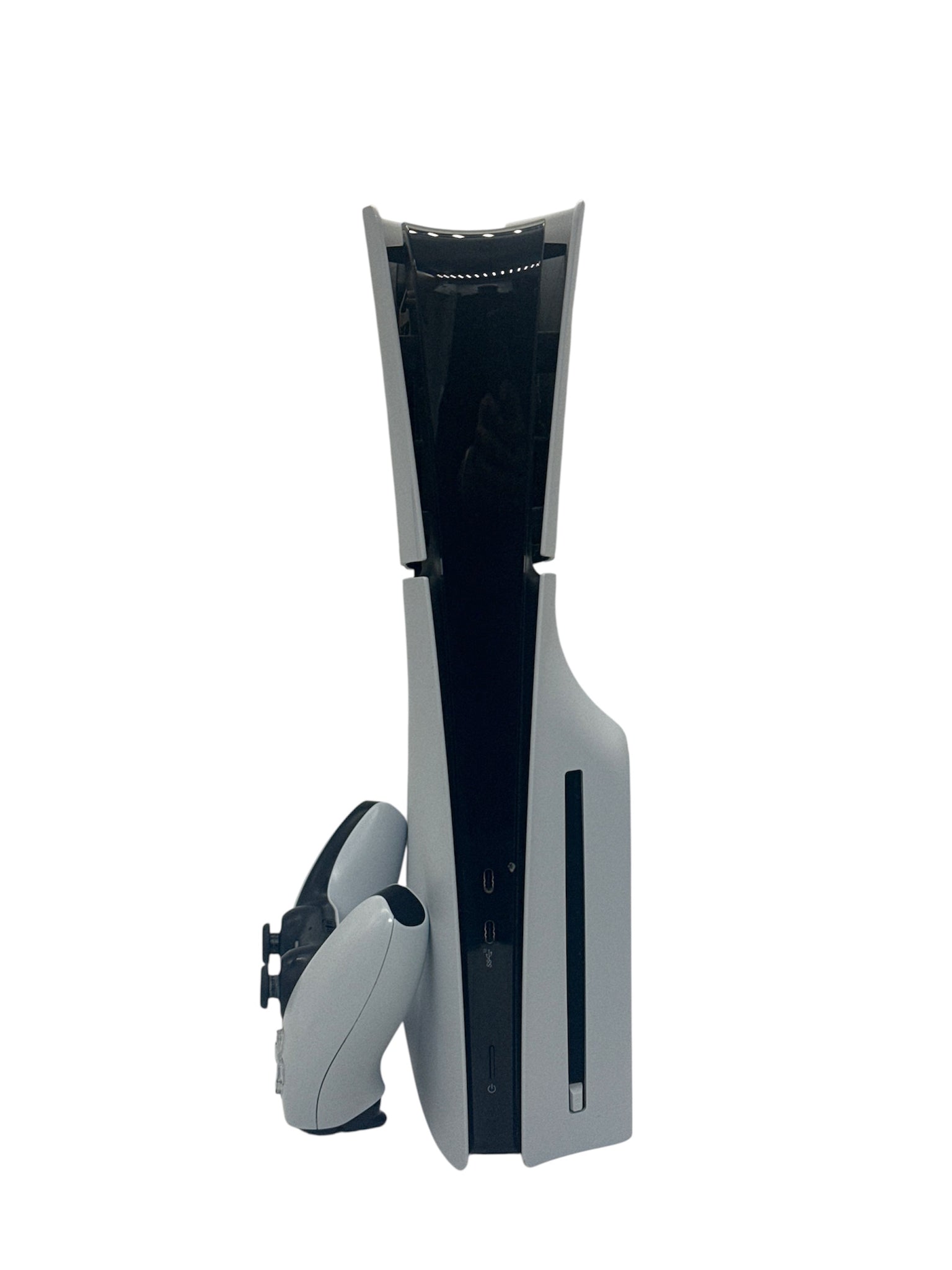 Prepare to enter a new realm of gaming with the PlayStation 5 Console Disc Slim. This innovative console ushers in an era of groundbreaking gaming experiences that redefine what's possible. At its heart lies a custom-designed CPU, GPU, and ultra-fast SSD with integrated I/O technology, delivering speeds previously unimaginable, eradicating those frustrating loading screens and plunging you straight into the action. Witness breathtaking visuals like never before, as the powerful hardware renders games with incredible fidelity, bringing virtual worlds to life with stunning detail. Experience a level of immersion you've never felt with support for groundbreaking technologies like haptic feedback, adaptive triggers, and 3D Audio. Feel the subtle nuances of every action, from the weight of a weapon to the rumble of a vehicle, and be enveloped in soundscapes that surround you with realistic depth and precision. Explore a world of immersive gaming experiences with an all-new generation of PlayStation exclusives that push the boundaries of storytelling, gameplay, and visual fidelity. The PlayStation 5 Console Disc Slim allows you to enjoy an extensive library of PS4 games, providing a vast array of options for gamers of all preferences. Immerse yourself in a world of exhilarating adventures, thought-provoking narratives, and captivating gameplay, all brought to life with the power of the PS5 Console Disc Slim. Though a vertical stand is not included with the console, it can be purchased separately, offering a choice for your ideal console setup.