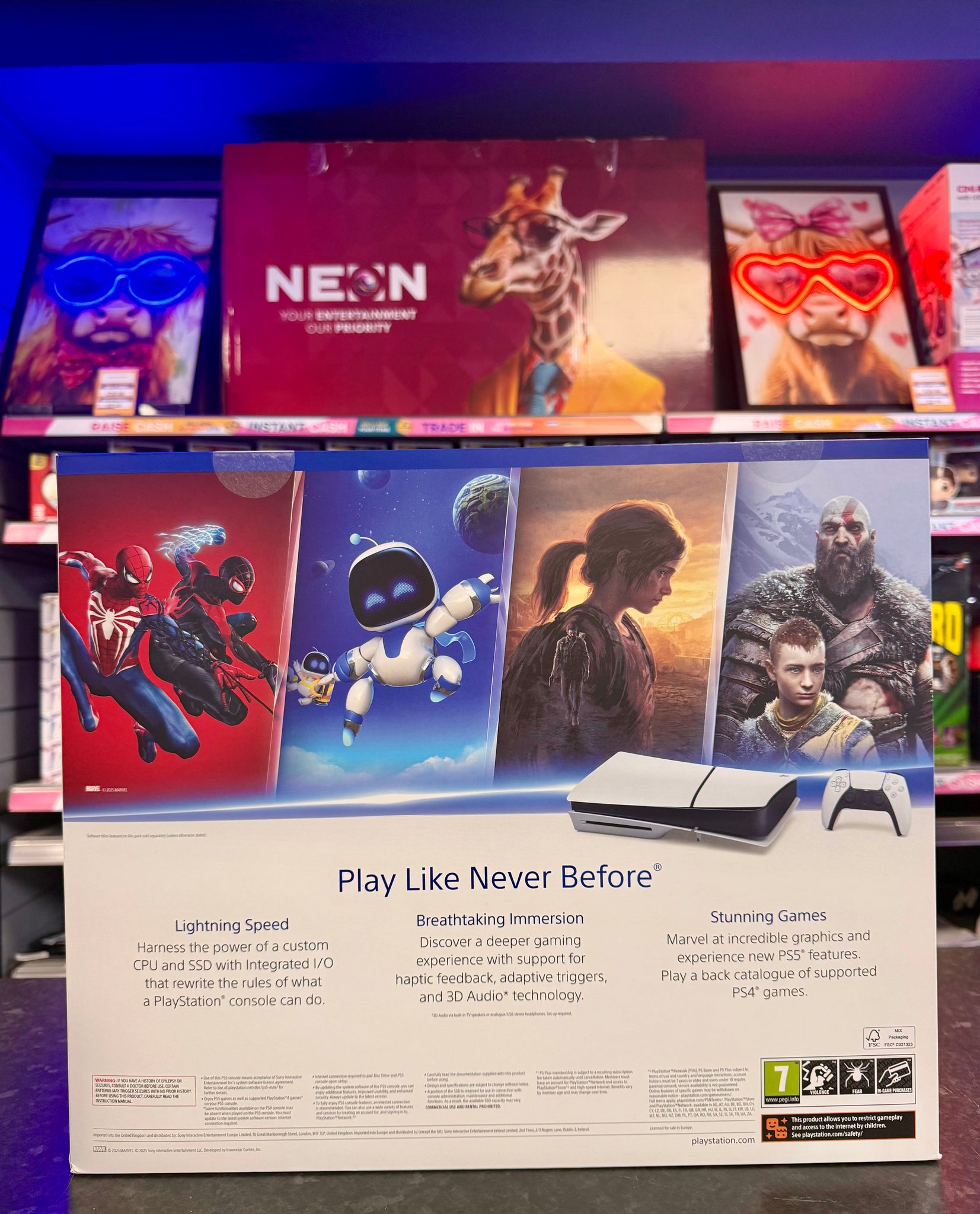 Here we have a PS5 Slim 1TB Disc Edition. ***This is brand new and still sealed with the products original contents. PlayStation 5 console, DualSense wireless controller, 2 horizontal stand feet, HDMI, AC power cord, USB cable, printed materials and a pre-installed game (ASTRO's PLAYROOM). ***For any queries please call our Chorley store direct from Mon- Sat on 01257 752333.