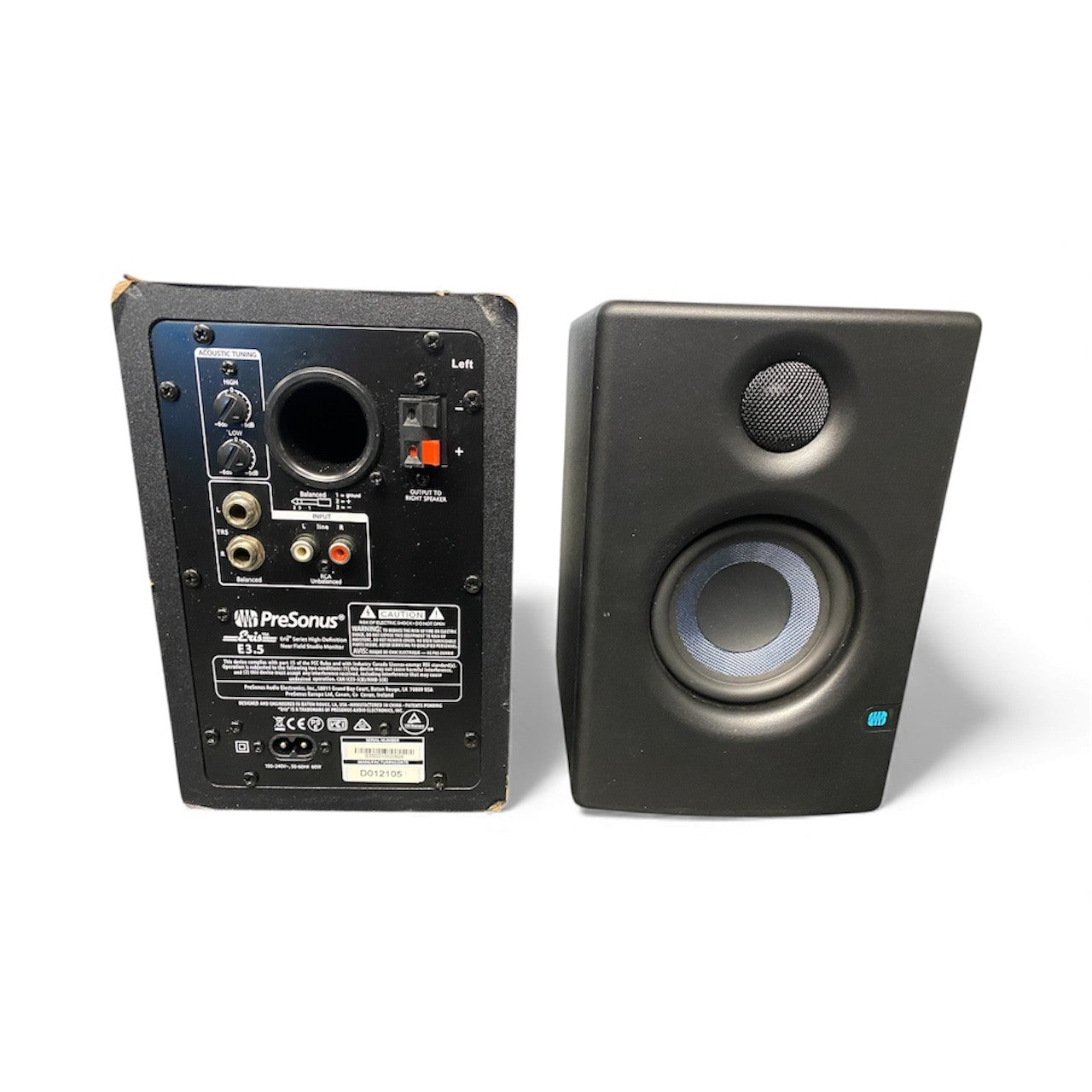 Presonus Eris 3.5 Active Speakers (Pair) PreSonus Eris -series studio monitors are used worldwide by audio engineers and producers who need to hear every detail of their recordings. Our best-selling studio monitors just got better! Eris 3 media reference monitors deliver studio-quality sound in an elegant, compact form factor that makes them ideally suited for bedroom studios, video production, and high-fidelity gaming setups. With 25 watts per side of onboard power, the Eris 3.5 reference monitors pack a serious punch, while still delivering clear, accurate audio. The one-inch silk-dome tweeter produces refined high-frequencies and is designed to radiate sound with a wide pattern, creating a large optimal listening area. Improved speaker voicing over previous designs delivers richer lows and a smoother crossover transition for articulate, accurate transient reproduction throughout the frequency range and a less-fatiguing listening experience. With three types of inputs, it's easy to connect just about any audio source to Eris 3.5 reference monitors. High- and low-frequency controls let you easily adjust the Eris speaker's frequency response to compensate for the acoustics of your space and create the most accurate sonic reproduction possible.