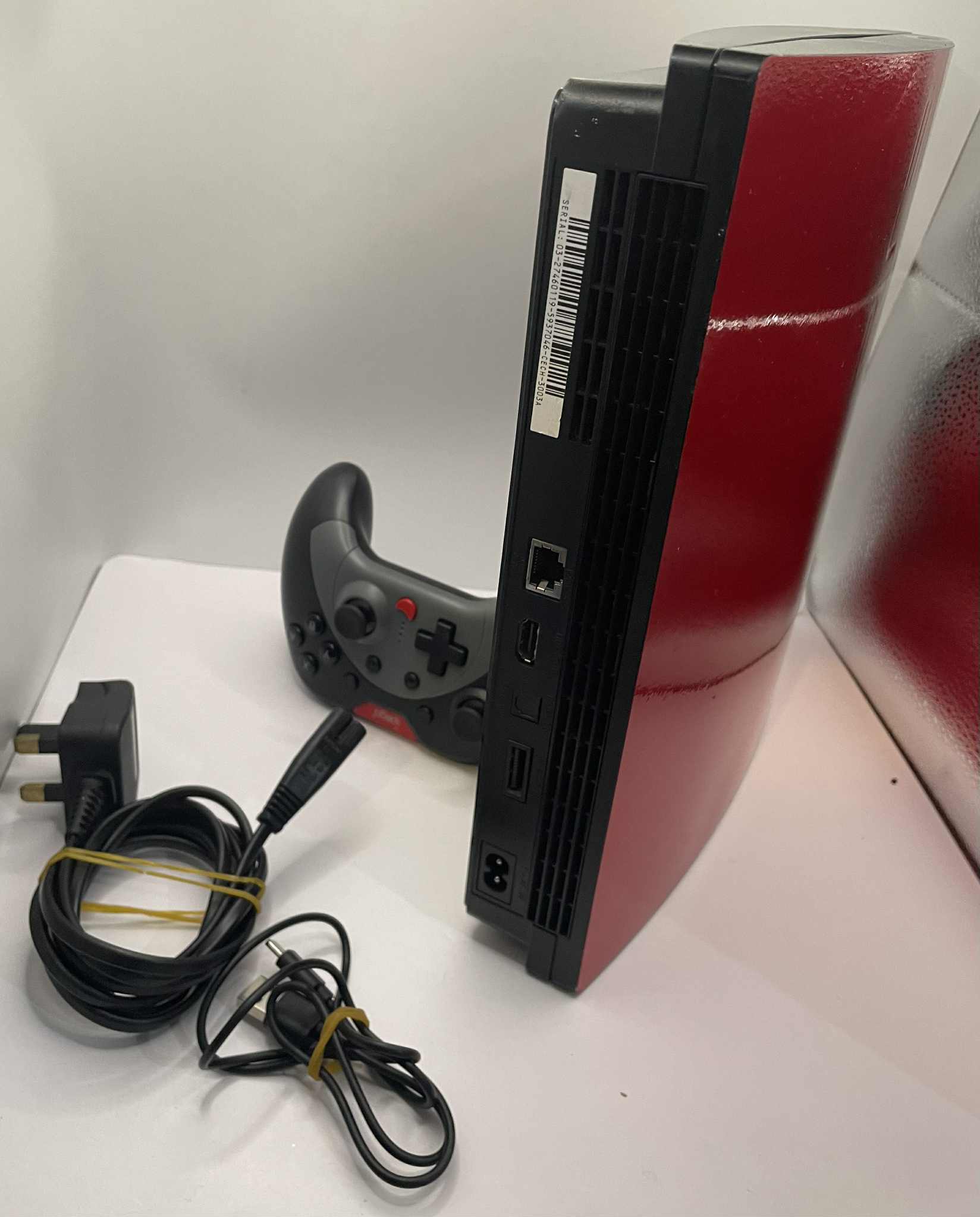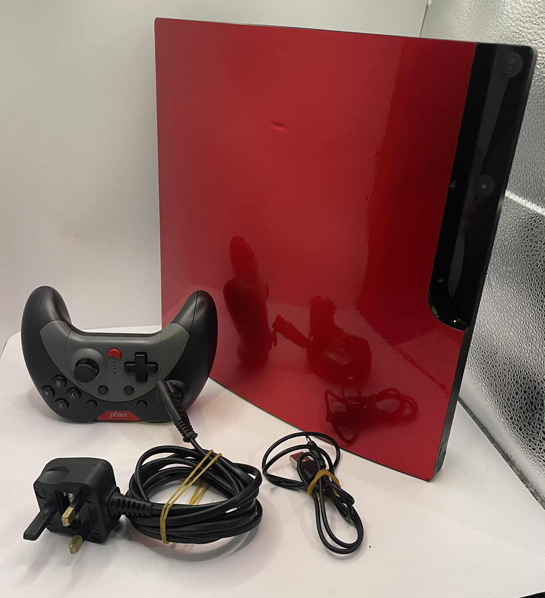 PS3-150GB Top in red 1 Controller 3th party Comes with controller charger No box In good condition