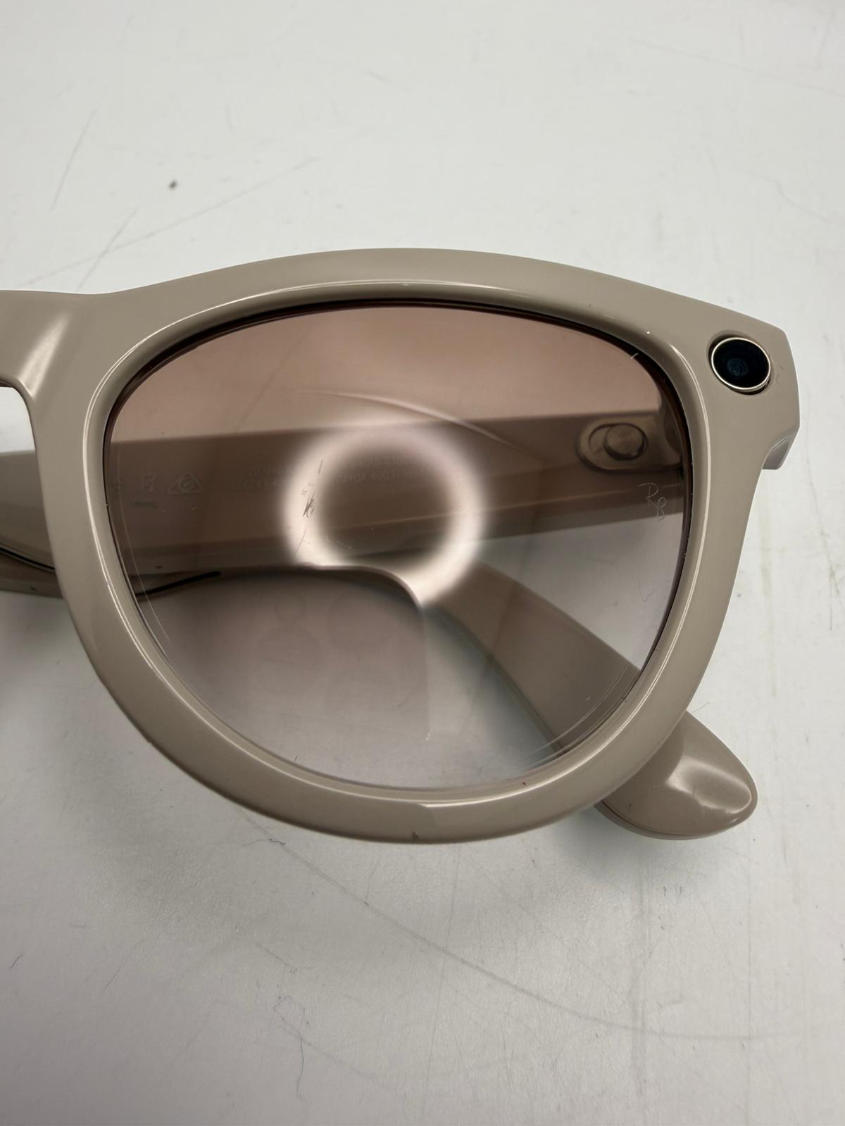 Brand: Ray-Ban Model: Meta RW4010 Skyler Colour: Shiny Chalky Grey Supplied with: Glasses And Charging Case Description: Good Condition - Slight Micro Scratches On Lens And Small Pen Mark On Charging Case (As Seen on Photos)