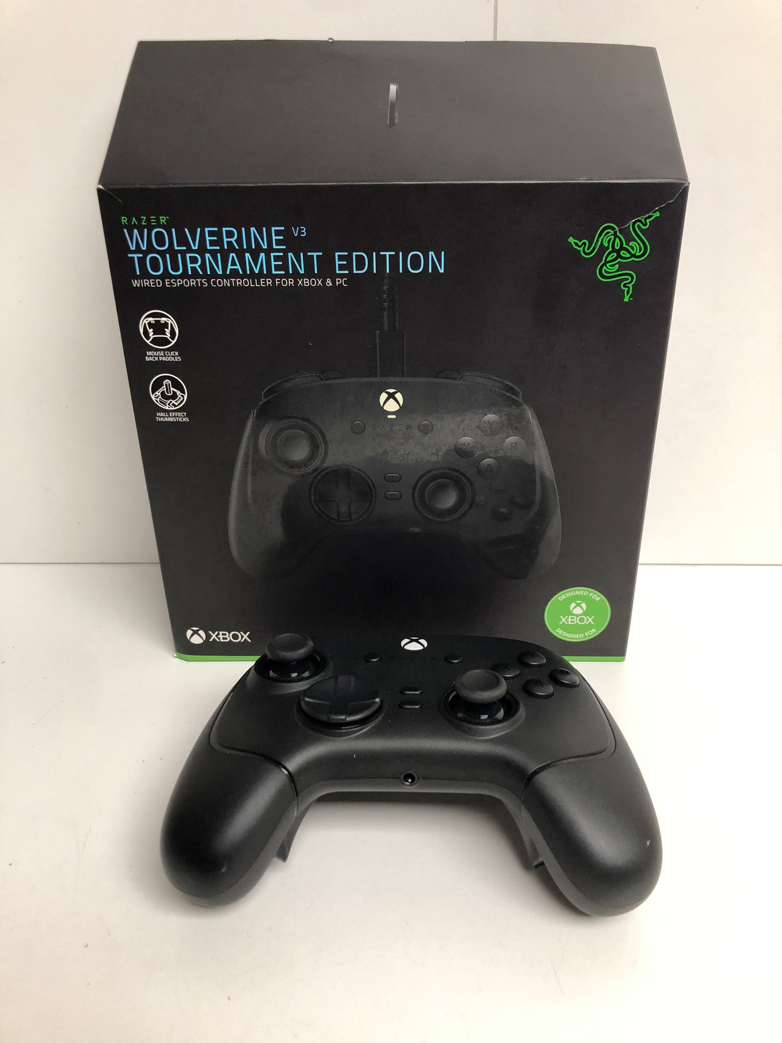 Get the edge you need to dominate the competition with the Razer Wolverine V3 Tournament Edition- our most advanced wired esports controller. Officially licensed by Xbox, perform like the pros on Xbox and PC with speed, control, and precision that sets you up for true gaming glory. 4 Mouse Click Back Paddles & 2 Claw Grip Bumpers Enjoy the same ultra-responsive actuation found in our top gaming mice with 4 paddles built into the controller's ergonomic, rubberized handles-topped with 2 claw grip bumpers for even more control. Razer Pro HyperTriggers Set the triggers for instant actuation with zero-travel time or ultra-precise analogue control. Be fully immersed in the action and feel every trigger pull with integrated haptic vibrations. Hall Effect Precision Thumbsticks Experience analogue thumbsticks that are not only more accurate than traditional models, but are smoother, lighter and more durable thanks to their anti-friction rings and pro-grade materials. Razer Mecha-Tactile Action Buttons & 8-Way Floating D-Pad By combining the speed of microswitches with the cushioned comfort of a rubber membrane, compete with quicker inputs that feel just as comfortable to press. Pro-Level Customization for Xbox & PC Set your thumbstick sensitivity and create custom button layouts using our dedicated app. Store a personalized profile and be ready for any type of competition. Detachable 10 ft USB Type C Cable Be ready to compete on Xbox or PC with a portable plug-and-play design. Hook it up and enjoy a zero-latency wired connection crucial for competitive play.