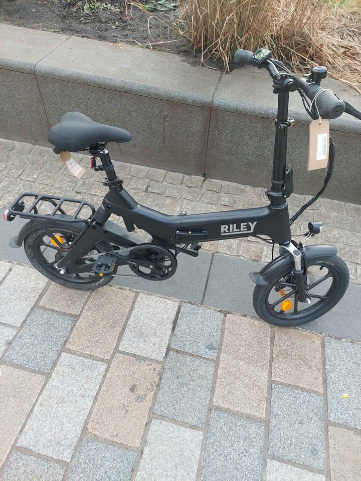The Riley RB1 Folding Electric Bike is a lightweight (18kg), compact, and foldable urban commuter e-bike featuring a 250W motor, a 50-mile (approx. 80km) range, and a detachable 36V 7.5Ah battery. Designed for portability, it features 16-inch tyres, a 2-3 hour charge time, a 25km/h top speed.