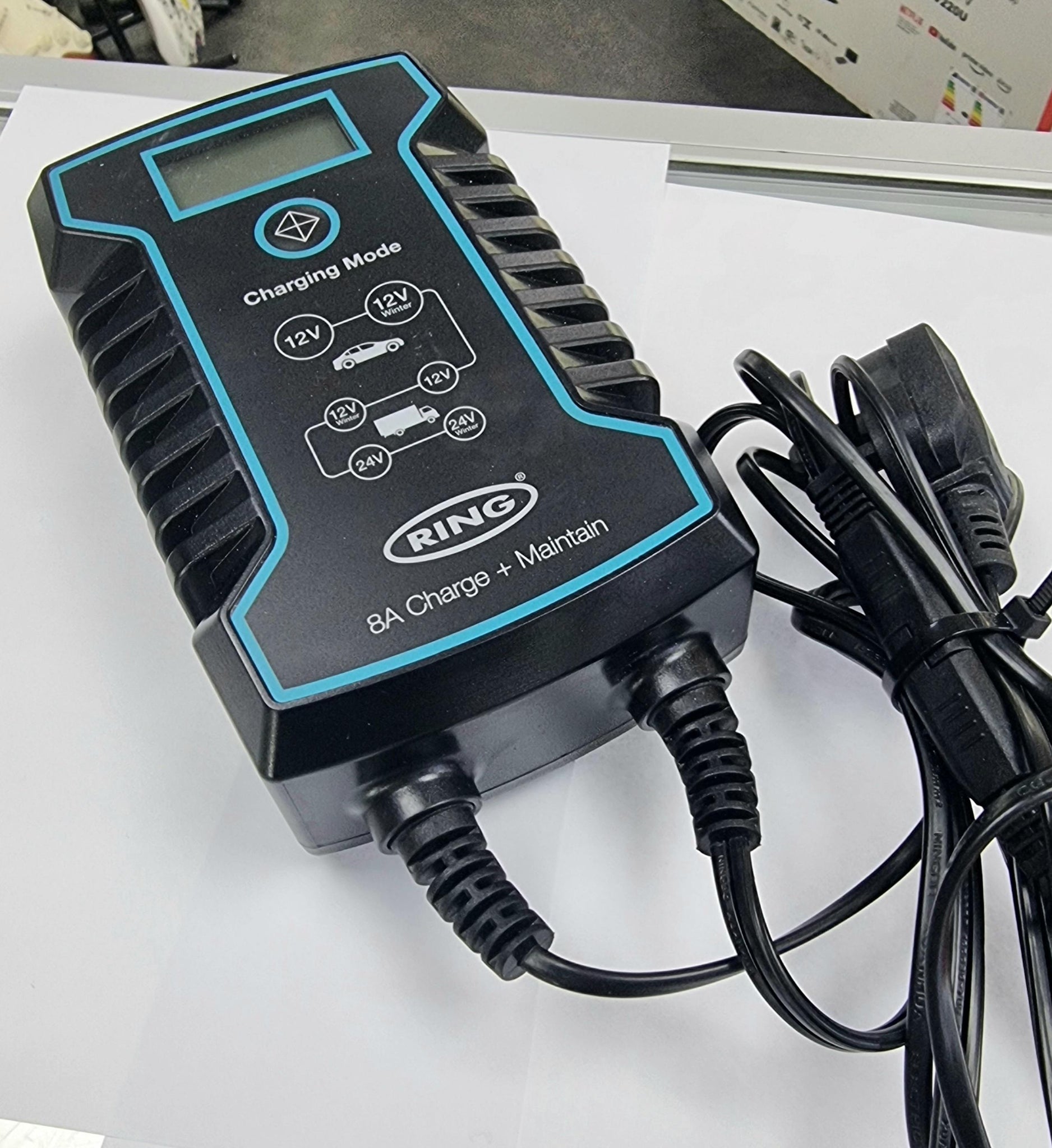 The smart solution for charging & maintaining large vehicle batteries. Ensure your vehicles are always charged and prepared with the advanced Ring Automotive RSC808 Smart Battery Charger. Featuring a robust 8A charging capability at either 12V or 24V, this charger delivers fast and reliable battery replenishment, even for larger vehicles. Simple to use, the one-touch charging system protects you and your battery from reverse polarity and short circuits. The rugged construction and IP65 rating ensures you can charge with confidence, even in the harshest of conditions. The large easy-to-read digital display is backlit, showing key information even in the dark. Once your battery reaches full charge, the RSC808 automatically shifts into maintenance mode. It continuously monitors and optimises your vehicle's battery, ensuring it remains in prime condition, ready to perform when you need it most.