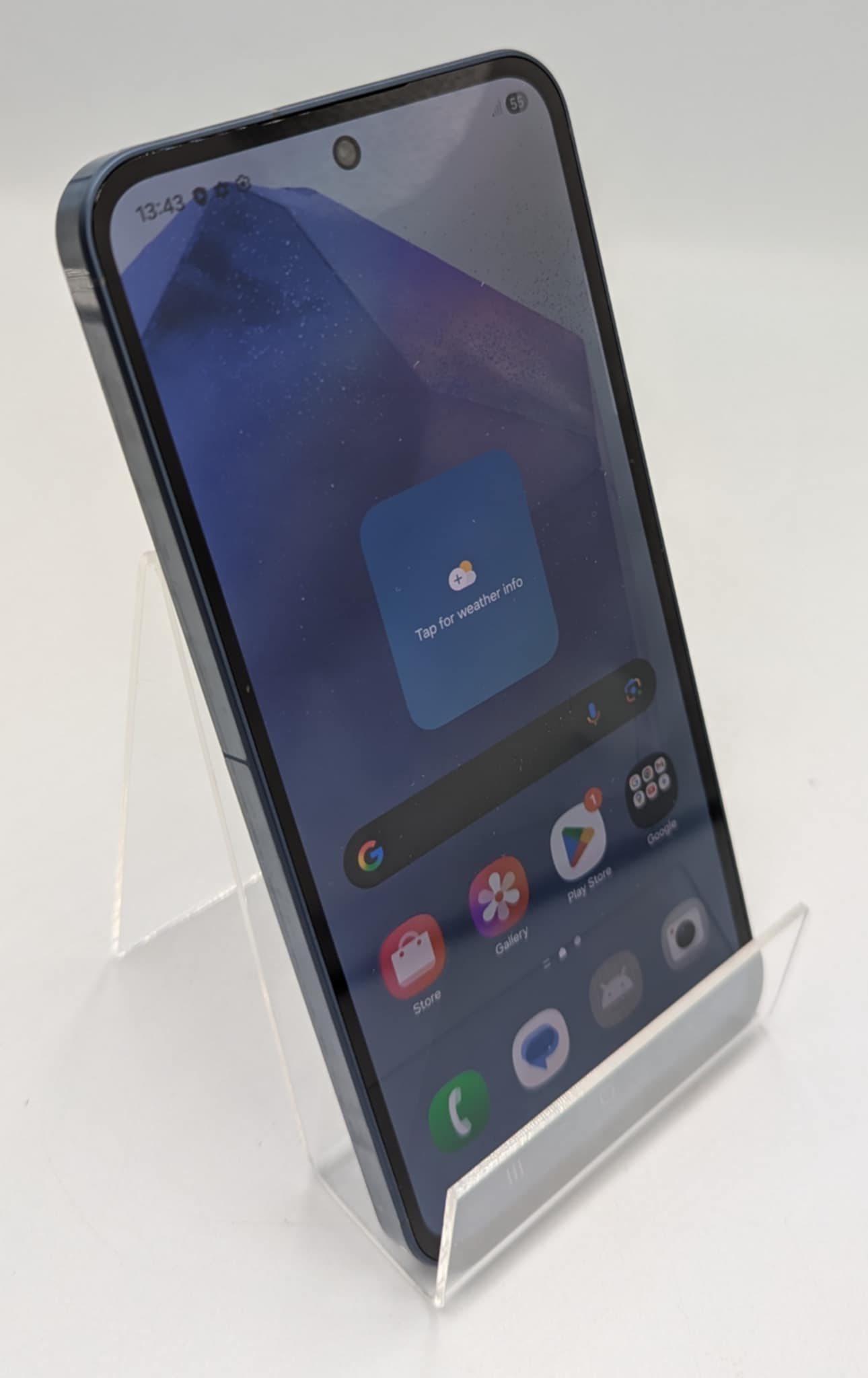 Circle it, find it Circle to Search with Google is now available on Galaxy A55 5G. Simply circle an object or text to get Google Search results. Awesome photos even in low-light The big pixel camera absorbs more light for bright, sharp, and accurate colours with low noise at night to give you awesome Nightography. 50MP of vibrant colours and details Snap crisp, detailed shots with the 50MP high-resolution Wide-angle camera. Catch tiny details and dynamic colours for a new visual experience. Perfect for capturing all your share-worthy moments. Capture your best side The 32MP Selfie camera allows you to capture high-quality selfies with options to choose warm or natural tones. Utilize Portrait Mode to elevate your pictures, sharpening focus on the subject with precise bokeh and background blur effects. Super HDR videos even under challenging lighting conditions Capture the world in Super HDR with videos that shine in different lighting conditions, thanks to optimised colour and contrast. Record precise and smooth motion with OIS and VDIS stabilisation in 4K. Edit photos in a tap Take your photos to the next level with Edit Suggestion at a touch of a button. Mashup elements from various photos in a fun way with Image Clipper. The immersive and clear display The 6.6-inch FHD+ Super AMOLED display provides an immersive experience. Vision Booster enhances visibility by optimising colour and contrast under the sun. Get a vivid display with 1,000 nits. And up to 120Hz adaptive refresh rate for a more responsive experience. Technical Details: Network 2G Network GSM Quad-band (850/900/1800/1900) 3G Network HSDPA Penta-band (850/900/1700(AWS)/1900/2100) 4G Network LTE 5G Network Display 6.6 inches, 1080 x 2340 pixels, Super AMOLED HDR10+ support Corning Gorilla Glass Victus+ 120Hz refresh rate 19.5:9 ratio Aspect ratio Always-on display 1000 nits (HBM) brightness Memory 128GB internal memory 8GB RAM MicroSD card support upto 1TB Data Wi-Fi 802.11 a/b/g/n/ac/6, dual-band, Wi-Fi Direct Bluetooth 5.3 with A2DP, LE and aptX HD GPS with Glonass, Beidou, Galileo and QZSS support NFC USB Type-C v2.0, USB On-The-Go Camera Triple (50, 12, 5) MP f/1.8, f/2.2, f/2.4, aperture (1/1.56, 1/3.06) inch sensor size Phase detection autofocus Optical Image Stabilization LED flash HDR, Panorama 4K@30fps, 1080p@30/60fps video recording 32 MP secondary camera f/2.2 aperture 26 mm focal length 1/2.74 inch sensor size 0.8 µm pixel size 4K@30fps, 1080p@30/60fps secondary video recording Hardware Exynos 1480 (4 nm) chipset Quad-core 2.75 GHz Cortex-A78 and Quad-core 2.0 GHz Cortex-A55 CPU Xclipse 530 GPU