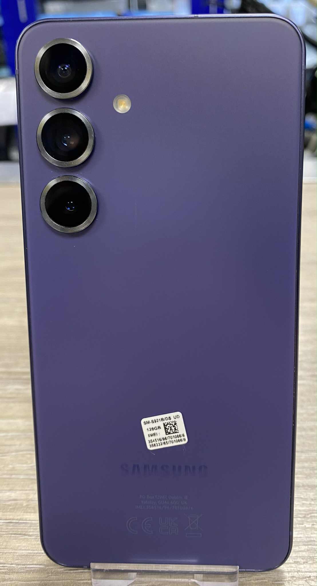 Samsung Galaxy S24 - 128GB. Model: SM-S921B. Unlocked to any network. Minor cosmetic scratches on the screen as it is seen in photos. Good condition. Doesn't include box and charging lead.