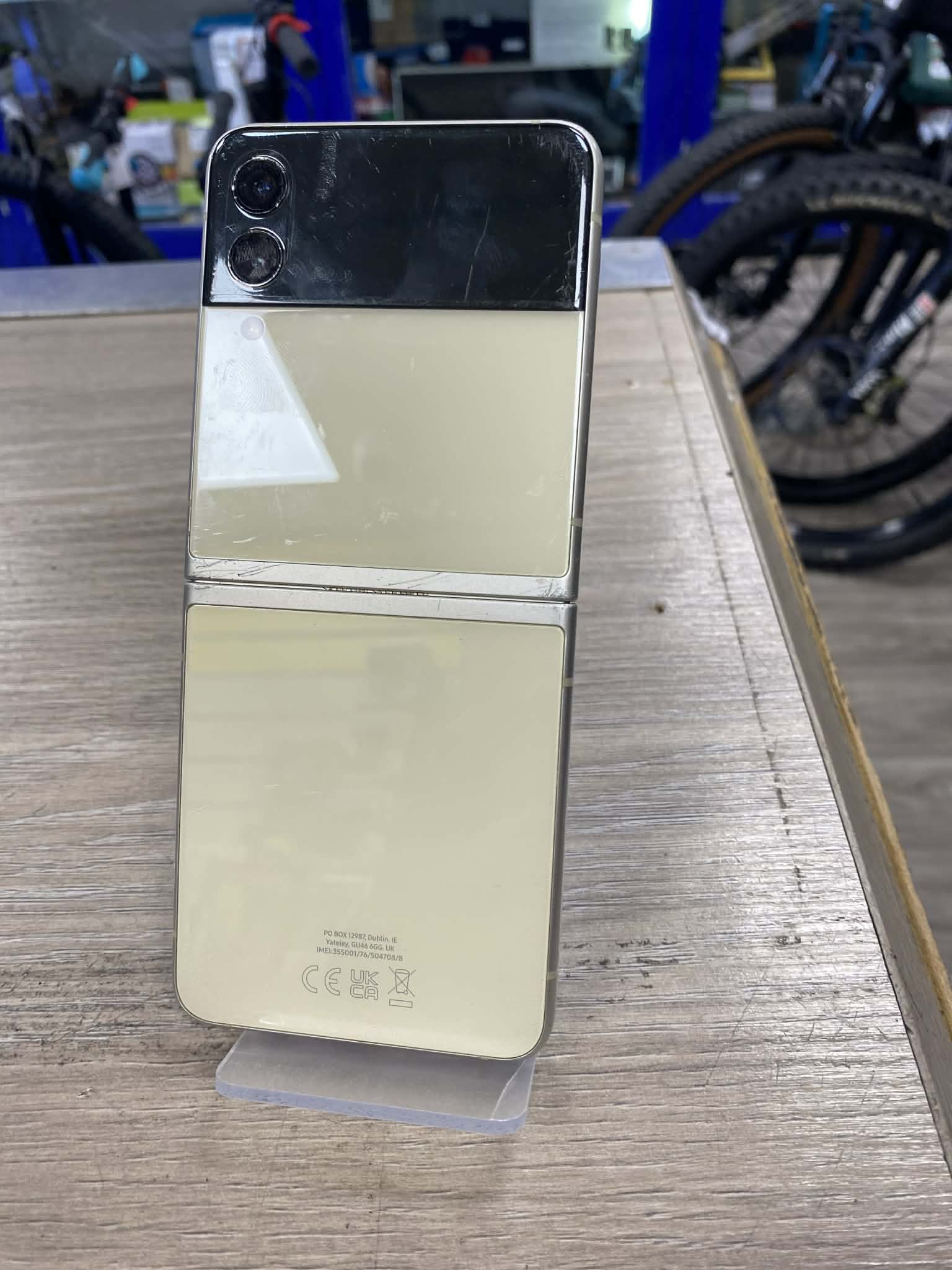 PHONE HAS SCREEN PROTECTOR INSTALLED 128gb storage Does not come with charger Comes unboxed Phone has scratches on back/surrounding screen Hinge in great working order 8gb ram Screen does not have any scratches - bubbling due to screen protector