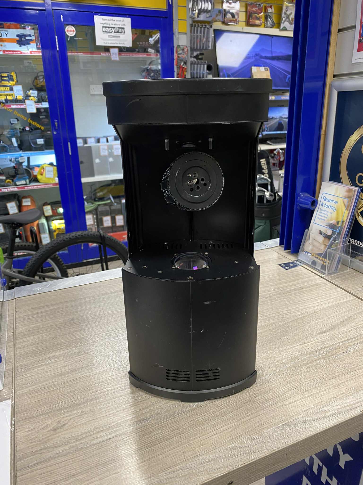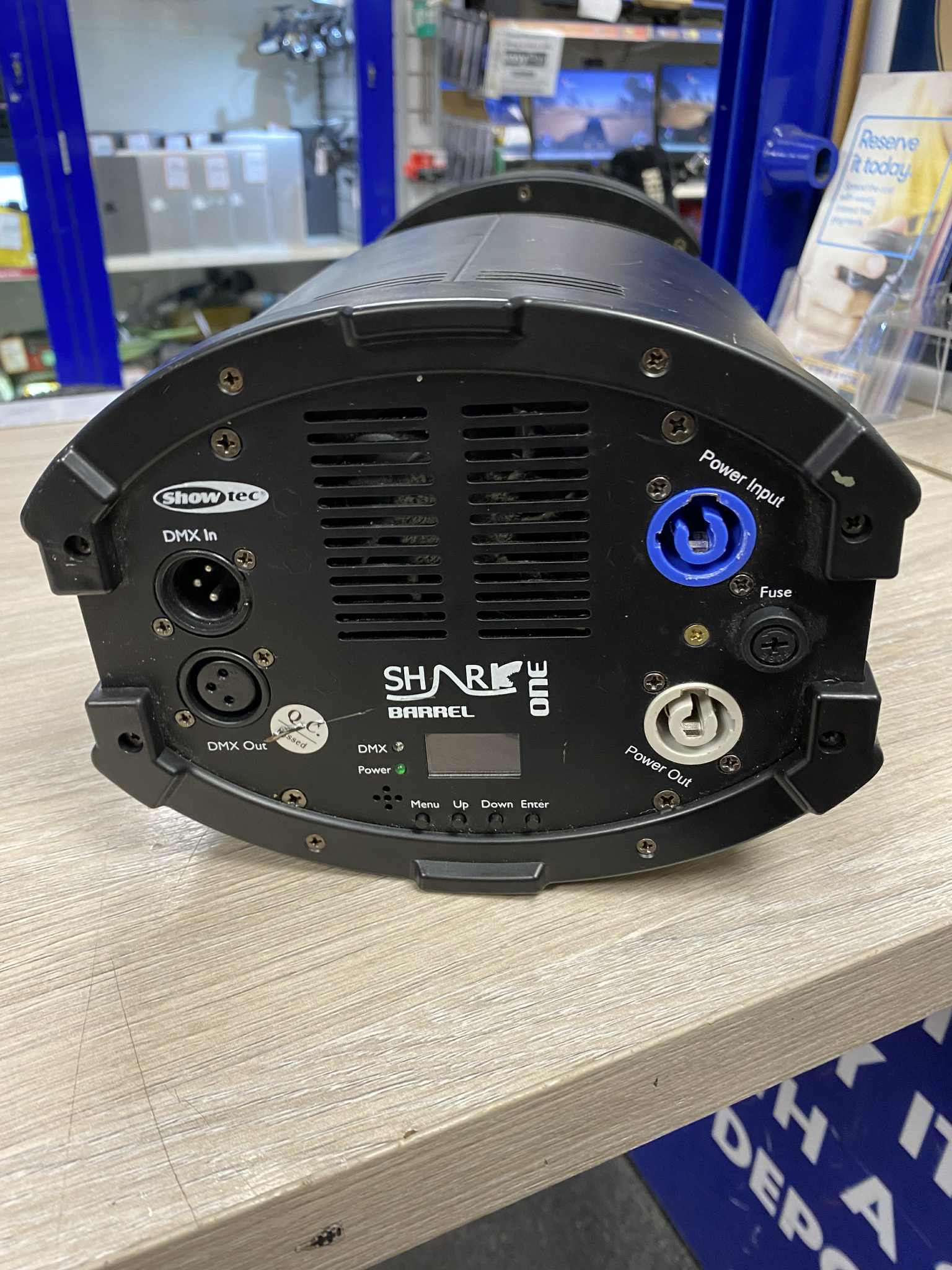 Showtec Shark Barrell One Doesn't include power cable 100w led barrell 8 colour wheel 7 rotating gobo wheel 360 degree barrell rotation 160 degree pan Motorised focus