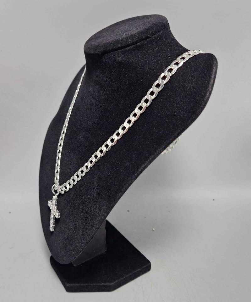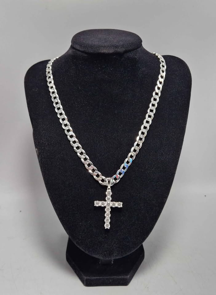 Silver Chain, 43G, 24" in length with Silver Cross Pendant