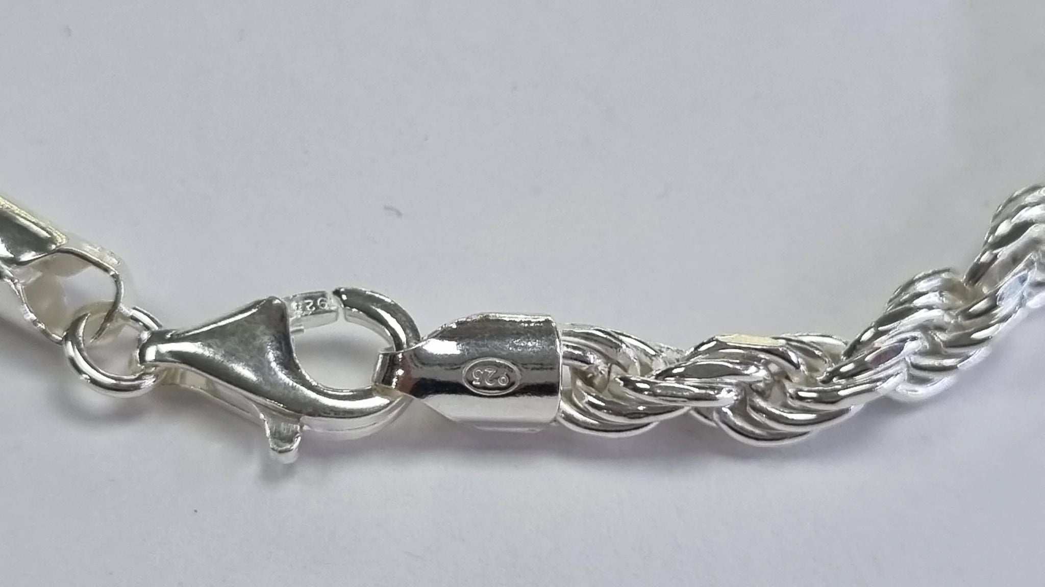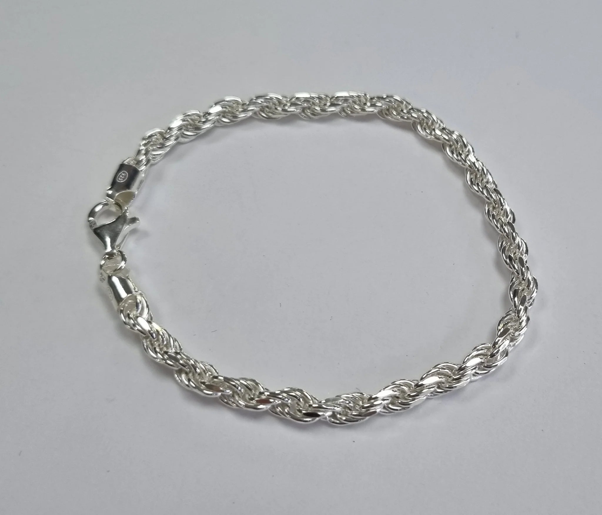 Silver Rope Bracelet, this is Brand New. weighs 15.73grams in total. This is 8.5" in length. 925 silver.