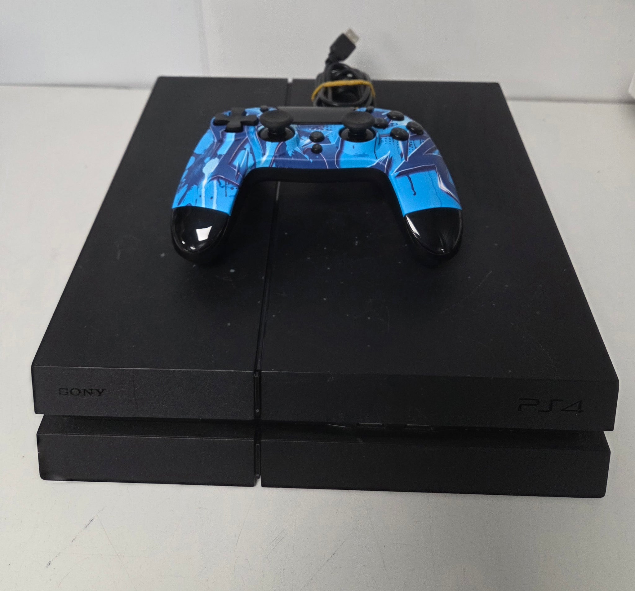 Unboxed. Includes power lead and one wired controller. Has some scratches to the top casing.