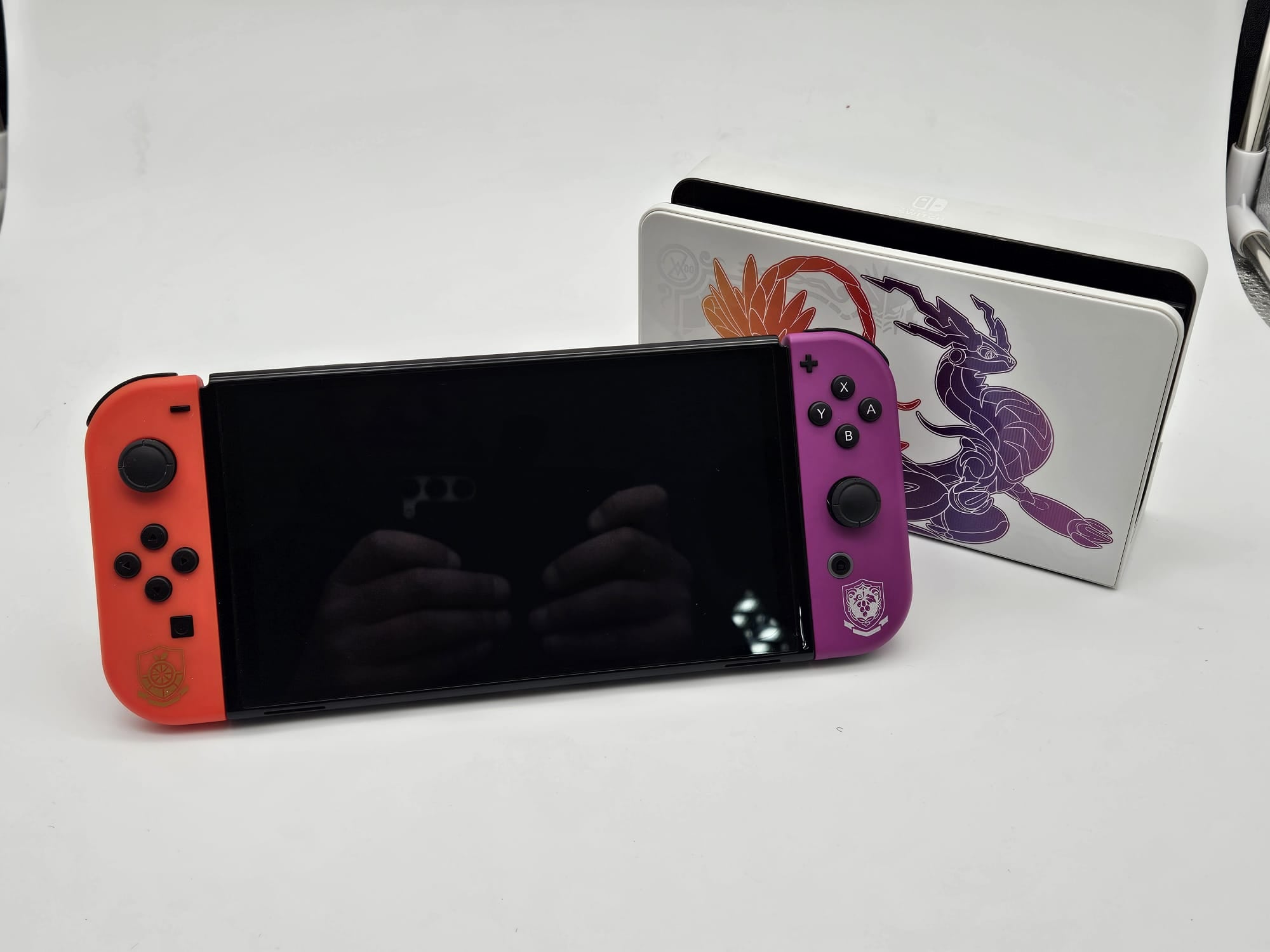 Switch Console, 128GB OLED Pokemon Scarlet & Violet Edition Used - Great condition - Minimal signs of use and the screen is in excellent condition. Includes The two attached joycons as pictured, An installed 128gb Nintendo MicroSD Card , HDMI Cable , Console dock and original power supply . Sadly there is no box included , but will be packed safely for shipping .