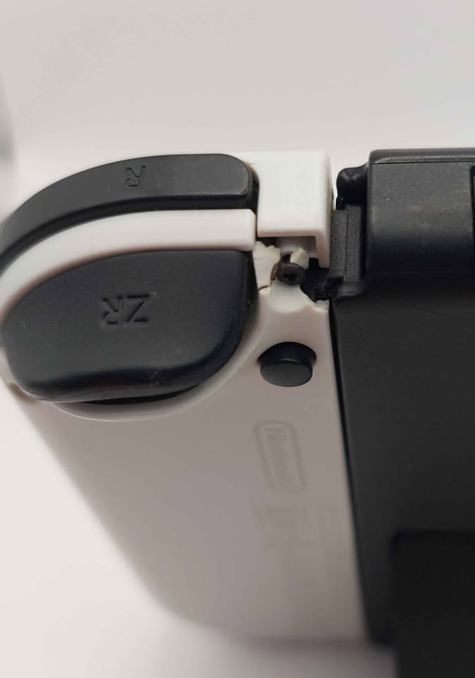 no docking station & * loose joy-cons & cracked joy-con * 7-inch display Nintendo Switch OLED Model includes a vibrant 7-inch OLED screen with a slimmer bezel. The large screen's vivid colours and high contrast deliver a rich handheld and tabletop gaming experience, bringing games to life whether you're racing at top speed or squaring off against enemies. What is an OLED screen? An OLED screen does not have a backlight like LCD screens, instead displaying images using light emitted by each individual pixel. Deep blacks can be represented by turning a pixel's light off, allowing for higher contrast. Enjoy tabletop mode at your preferred viewing angle Flip out the stand and hand a controller to another player to share the screen and enjoy competitive or co-operative multiplayer, anytime and anywhere. Nintendo Switch OLED Model's wide adjustable stand can be set to your preferred viewing angle for comfortable gameplay in tabletop mode. Onboard speakers with enhanced audio Enjoy clear sound when playing in handheld or tabletop modes. Three play modes Nintendo Switch can transform to suit your situation, so you can play the games you want, no matter how busy life may be. Enjoy games anytime, anywhere, with anyone! Tabletop mode Share the screen, share the fun. Flip the stand to share the screen, then share the fun with a multiplayer game. Handheld mode Carry around a large, beautiful display anywhere you go. Pick it up and play with the Joy-Con controllers attached. Enjoy playing solo, or play together with friends locally or online. Share the fun with Joy-Con Nintendo Switch has a controller on each side of the console that function - the Joy-Con. Hold them vertically, horizontally, or share one with a friend to enjoy competitive or co-operative gameplay anytime, anywhere. Local wireless Players can sync together up to eight Nintendo Switch, Nintendo Switch - OLED Model or Nintendo Switch Lite consoles to play competitive and co-operative multiplayer games. Technical Details: 7-inch OLED, 1280x720 resolution, Capacitive touch screen NVIDIA customised Tegra processor CPU 64 GB System memory Wireless LAN (IEEE 802.11 a/b/g/n/ac compliant) Bluetooth v4.1 1920x1080, 60 fps Maximum resolution Video output 5.1ch linear PCM Audio output Stereo Speakers USB Type-C terminal 4 pole stereo 3.5mm mini plug (CTIA standard) Audio jack Game card slot MicroSD, MicroSDHC and MicroSDXC memory cards Accelerometer / gyroscope / brightness sensors 102 x 242 x 13.9mm