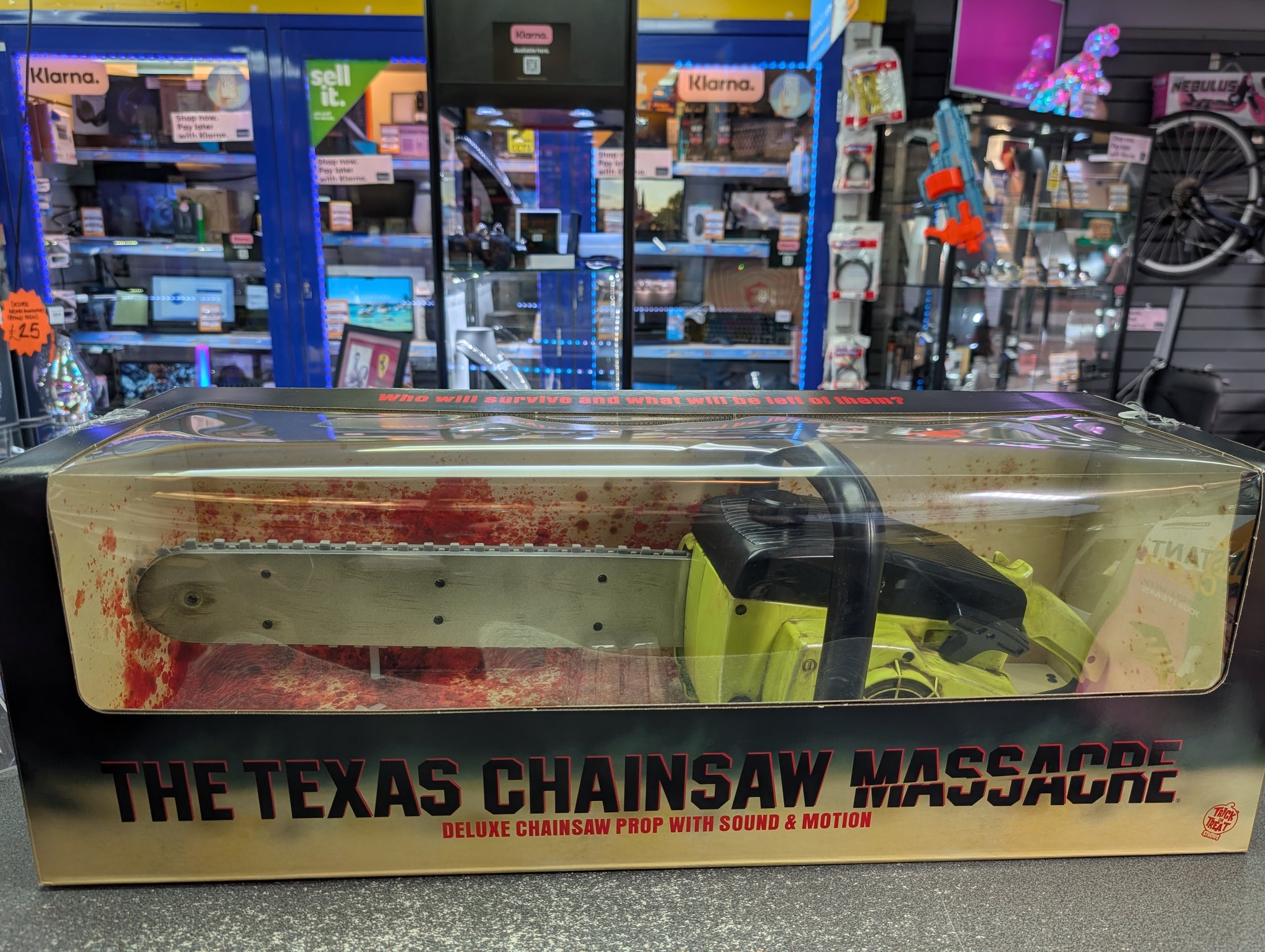 HERE WE HAVE THE TEXAS CHAIN SAW MASSACRE DELUXE CHAIN SAW PROP WITH SOUND & MOTION. THIS HAS BEEN OUT OF THE BOX AND IS IN VERY GOOD CONDITION. ** FOR ANY QUERIES PLEASE CALL OUR PRESTON STORE DIRECT MON-SAT 01772 204889