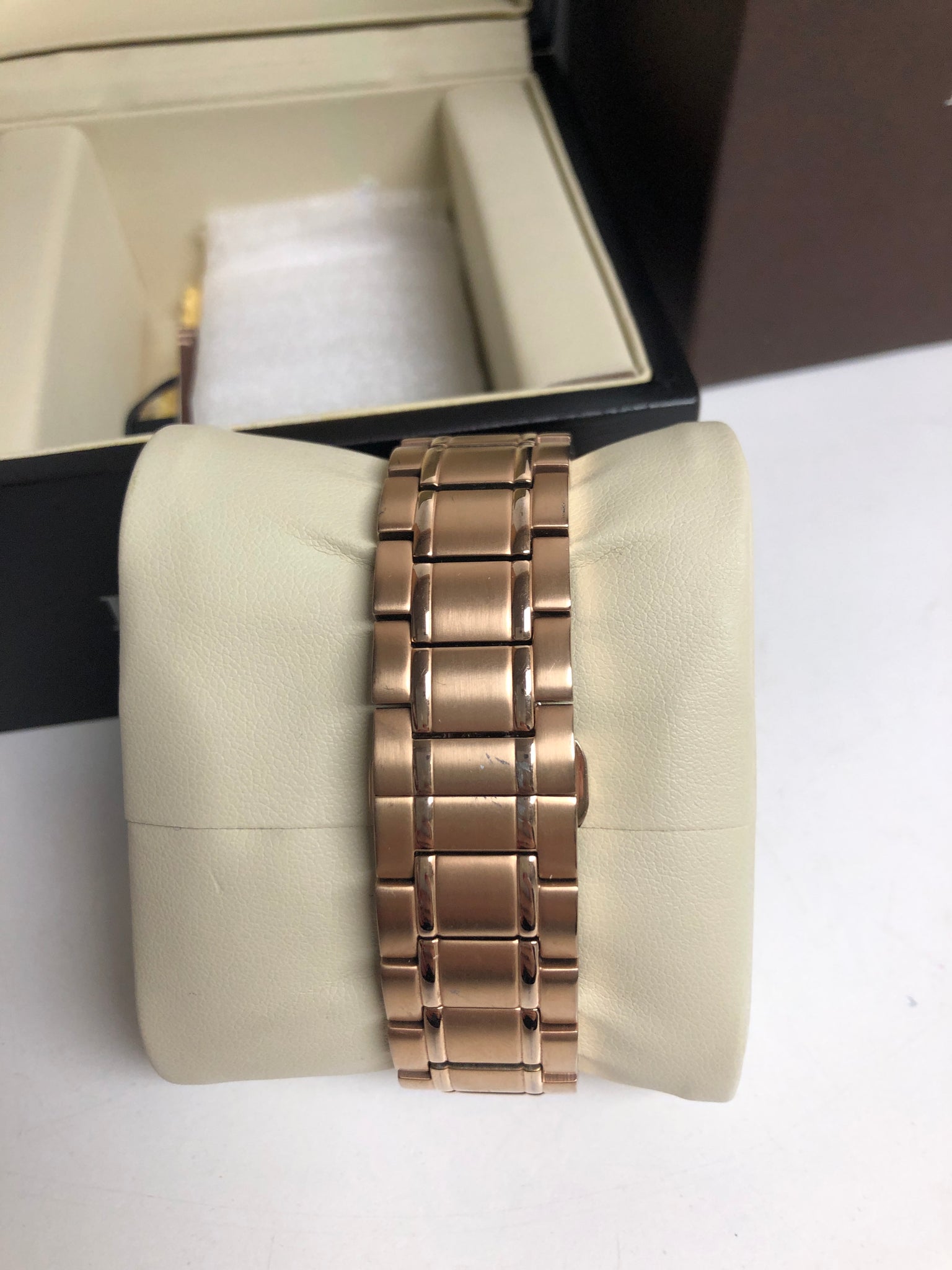 This analogue watch from Thomas Earnshaw has a stainless steel strap in rose gold, complemented by a black dial. The automatic powered watch has hour / minute functions and the dial for the Thomas Earnshaw ES-8006-44 men's watch has 44 mm in diameter. An excellent choice for men! boxed, in good condition with little signs of use