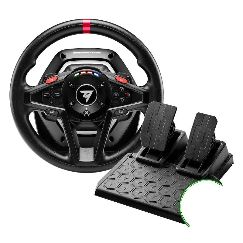 Your first feel of racing with the Thrustmaster T128 racing wheel for Xbox and PCThe Thrustmaster T128X for XBox and PC features the HYBRID DRIVE system, which combines a belt and gears mechanism to provide immersive and versatile Force Feedback, and delivers 20% more power (in relation to previous Thrustmaster TMX hybrid racing wheels). Its lightweight wheel rim helps you really feel the sensations transmitted by the Force Feedback system, for an authentic racing experience and to optimise your racing lines. A 4-colour LED strip lets you keep an eye on the engine speed and indicates when it is time to shift gears. Thanks to the clamp-based attachment system, the racing wheel can be adjusted to fit desks and tables for quick and easy setup. The T2PM pedal set included with the racing wheel features patented frictionless magnetic technology, for enhanced precision that won’t decrease over time.The T128X has been designed for all gamers looking for a first racing wheel offering new immersive sensations, and users who want to improve their driving skills.