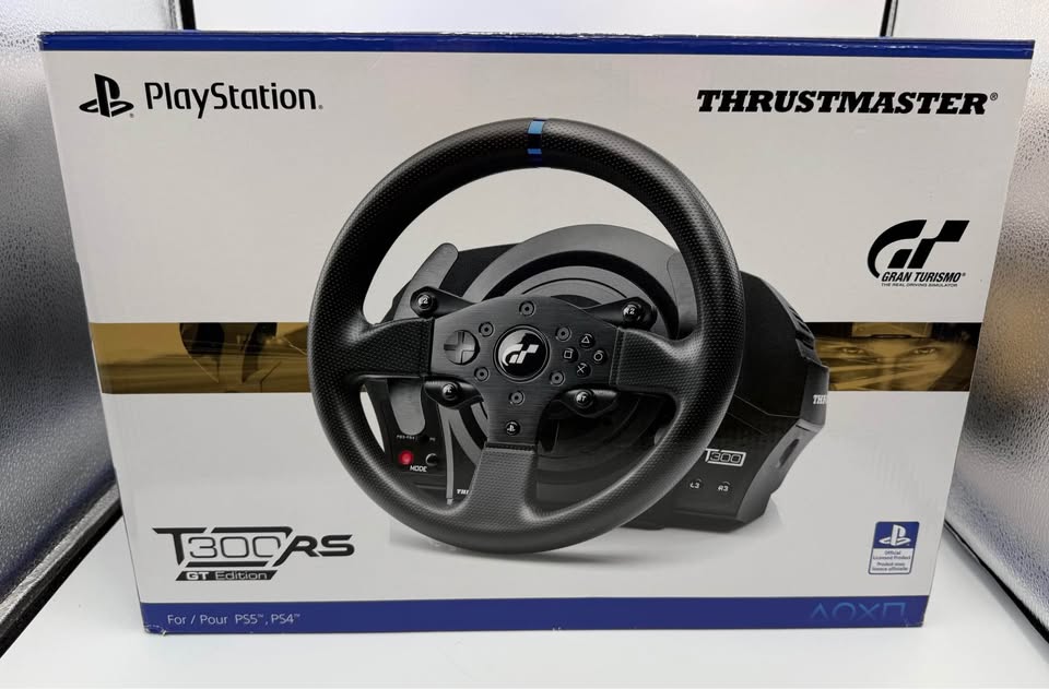 The Thrustmaster T300 RS GT is an officially licensed, high-performance force feedback racing wheel for PS5, PS4, and PC, featuring a 1080° brushless motor for smooth, realistic, and quiet racing. It includes a 28cm detachable wheel, metal pedal set (T3PA-GT), and H.E.A.R.T magnetic sensors for high, durable precision. Key Features & Specifications Force Feedback & Motor: Powerful, fast, and brushless servo motor (nearly 25 watts) provides responsive, realistic, and smooth force feedback effects. Mechanism: Dual-belt system ensures smooth, quiet gameplay without dead zones. Precision: H.E.A.R.T (HallEffect AccuRate Technology) magnetic sensors offer 16-bit resolution (65,536 values) for enduring precision. Rotation: Adjustable angle from 270° to 1080°. Wheel Design: 11 inch/28 cm diameter with a detachable, rubber-coated rim featuring a Gran Turismo (GT) logo. Pedal Set: Includes the 3-pedal T3PA-GT pedal set (metal), with height and spacing adjustment, including a conical rubber brake mod. Compatibility: Official licensed product for PS4/PS3/PC, compatible with PS5 (using PS4 games). Ecosystem: Compatible with other Thrustmaster detachable wheels, the TH8A shifter, and TSS Handbrake. Product Description The T300 RS GT Edition is designed for serious sim racers seeking to improve their performance with an immersive, durable, and precise setup. It is often considered the best mid-range, force feedback wheel on the market, offering realistic weight and feel. The unit's brushless motor allows for constant, high-intensity feedback during long sessions, making it ideal for endurance racing. Package Contents T300 RS GT Racing Wheel 3-Pedal T3PA-GT Pedal Set Attachment system FOLDABLE STAND