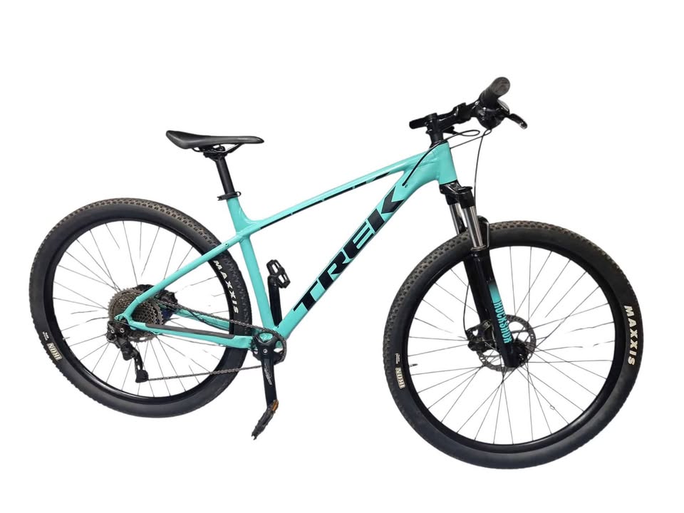 The Trek Marlin with an Alpha Silver Aluminum frame is an entry-level hardtail mountain bike known for being lightweight, durable, and versatile for both trails and commuting. It features a modern, trail-friendly geometry, internal cable routing, and mounting points for racks and fenders, making it a popular choice for new riders and commuters. Key features Frame: Alpha Silver Aluminum, which is lightweight and strong. Geometry: Modern trail geometry provides stable handling on varied terrain. Versatility: It includes rack and kickstand mounts, making it suitable for both trail riding and daily commuting, particularly for college campuses. Internal cable routing: This keeps cables protected from the elements and gives the bike a cleaner look. Tire clearance: There is ample clearance for wide tires, which provides grip and control. Wheel sizes: The bike uses "Smart Wheel Size," meaning smaller bikes (XS and S) come with 27.5" wheels, while larger sizes (M and up) have 29" wheels. Brakes: Depending on the model year and specific trim (like Marlin 5, 6, or 7), it may come with hydraulic or mechanical disc brakes for confident stopping.