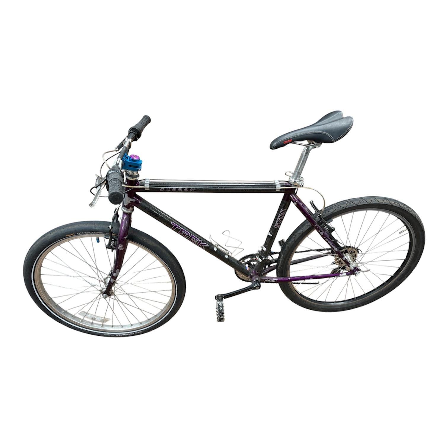 Trek carbon 8700 in purple made in 1994. has a full carbon frame making the bike very light weight. It is a 21 gear bike with a 20" frame and 23" wheels