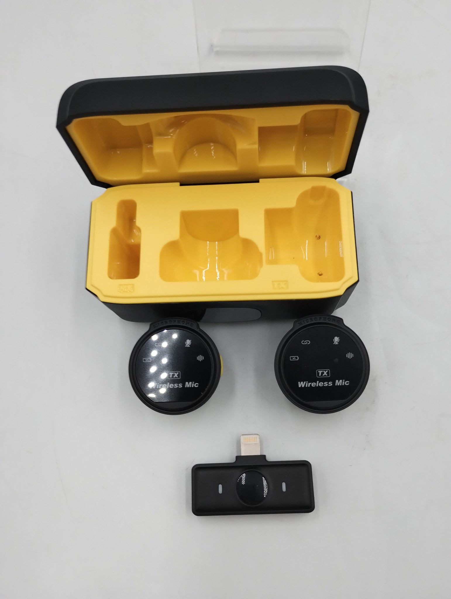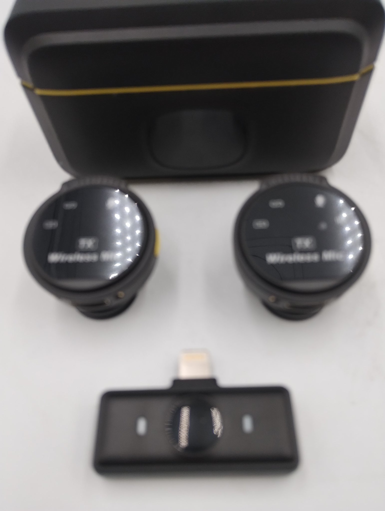 UNBOXED IN CHARGING CASE. 2 CLIP ON MICROPHONES IN VERY GOOD CONDITION