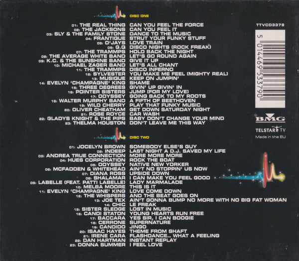 1-01 The Real Thing– Can You Feel The Force 4:02 1-02 The Jacksons– Can You Feel It 3:21 1-03 Sly & The Family Stone– Dance To The Music (Album Version) 2:10 1-04 Frantique– Strut Your Funky Stuff 3:02 1-05 O'Jays*– Love Train (Album Version) 2:39 1-06 G.Q*– Disco Nights (Rock Freak) 3:06 1-07 The Trammps– Hold Back The Night 1:52 1-08 The Average White Band*– Let's Go Round Again 3:51 1-09 K.C. & The Sunshine Band*– Give It Up (Album Version) 3:23 1-10 Michael Zager Band*– Let's All Chant 2:45 1-11 The Trammps– Disco Inferno 2:53 1-12 Sylvester– You Make Me Feel (Mighty Real) 4:14 1-13 Musique– Keep On Jumpin' 3:13 1-14 Evelyn 'Champagne' King*– Shame 3:49 1-15 Three Degrees*– Givin' Up Givin' In 3:36 1-16 Pointer Sisters– Jump (For My Love) 3:48 1-17 Odyssey (2)– Going Back To My Roots 4:11 1-18 Walter Murphy Band*– A Fifth Of Beethoven 2:44 1-19 Wild Cherry– Play That Funky Music (Album Version) 2:59 1-20 Oliver Cheatham– Get Down Saturday Night 3:56 1-21 Rose Royce– Car Wash (Single Version) 2:39 1-22 Gladys Knight & The Pips*– Baby Don't Change Your Mind 3:04 1-23 Thelma Houston– Don't Leave Me This Way (Single Version) 3:34 2-01 Jocelyn Brown– Somebody Else's Guy 3:41 2-02 Indeep– Last Night A D.J. Saved My Life 4:39 2-03 Andrea True Connection– More More More 2:51 2-04 Hues Corporation*– Rock The Boat 2:52 2-05 Odyssey (2)– Native New Yorker 4:08 2-06 McFadden & Whitehead– Ain't No Stoppin' Us Now 3:21 2-07 Diana Ross– Upside Down 3:20 2-08 Shalamar– I Can Make You Feel Good 2:31 2-09 LaBelle Feat. Patti LaBelle– Lady Marmalade (Album Version) 3:23 2-10 Melba Moore– This Is It 3:06 2-11 Evelyn 'Champagne' King*– Love Come Down 3:43 2-12 The Whispers– And The Beat Goes On 2:51 2-13 Joe Tex– Ain't Gonna Bump No More With No Big Fat Woman 3:09 2-14 Chic– Le Freak 3:20 2-15 Sister Sledge– Lost In Music 2:55 2-16 Candi Staton– Young Hearts Run Free (K-Klassic Radio Edit) Remix – K-Klass 3:50 2-17 Baccara– Yes Sir, I Can Boogie 3:06 2-18 Cerrone– Supernature 3:11 2-19 Candido– Jingo 3:38 2-20 Isaac Hayes– Theme From Shaft 3:09 2-21 Irene Cara– Flashdance... What A Feeling 3:29 2-22 Dan Hartman– Instant Replay (Album Version) 5:00 2-23 Donna Summer– I Feel Love 3:30