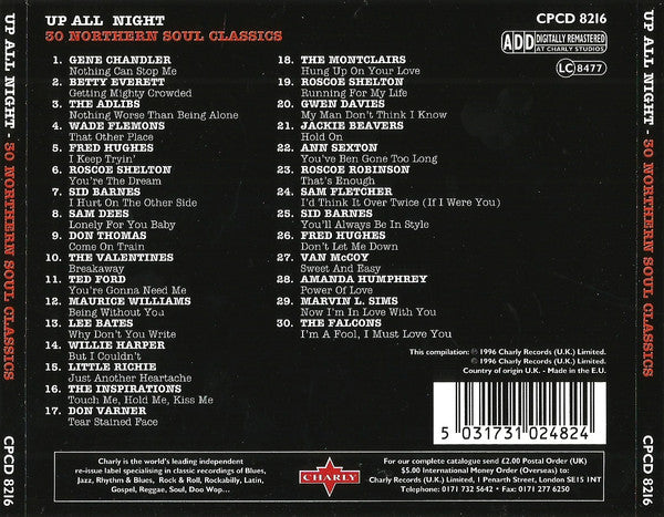 1 Gene Chandler– Nothing Can Stop Me 2 Betty Everett– Getting Mighty Crowded 3 The Adlibs*– Nothing Worse Than Being Alone 4 Wade Flemons– That Other Place 5 Fred Hughes– I Keep Trying 6 Roscoe Shelton– You're The Dream 7 Sid Barnes*– I Hurt On The Other Side 8 Sam Dees– Lonely For You Baby 9 Don Thomas– Come On Train 10 The Valentines (12)– Breakaway 11 Ted Ford– You're Gonna Need Me 12 Maurice Williams– Being Without You 13 Lee Bates– Why Don't You Write 14 Willie Harper– But I Couldn't 15 Little Richie– Just Another Heartache 16 The Inspirations (4)– Touch Me, Hold Me, Kiss Me 17 Don Varner– Tear Stained Face 18 The Montclairs– Hung Up On Your Love 19 Roscoe Shelton– Running For My Life 20 Gwen Davies*– My Man Don't Think I Know 21 Jackie Beavers*– Hold On 22 Ann Sexton– You've Been Gone Too Long 23 Roscoe Robinson– That's Enough 24 Sam Fletcher– I'd Think It Over Twice (If I Were You) 25 Sid Barnes*– You'll Always Be In Style 26 Fred Hughes– Don't Let Me Down 27 Van McCoy– Sweet And Easy 28 Amanda Humphrey– Power Of Love 29 Marvin L. Sims– Now I'm In Love With You 30 The Falcons– I'm A Fool, I Must Love You