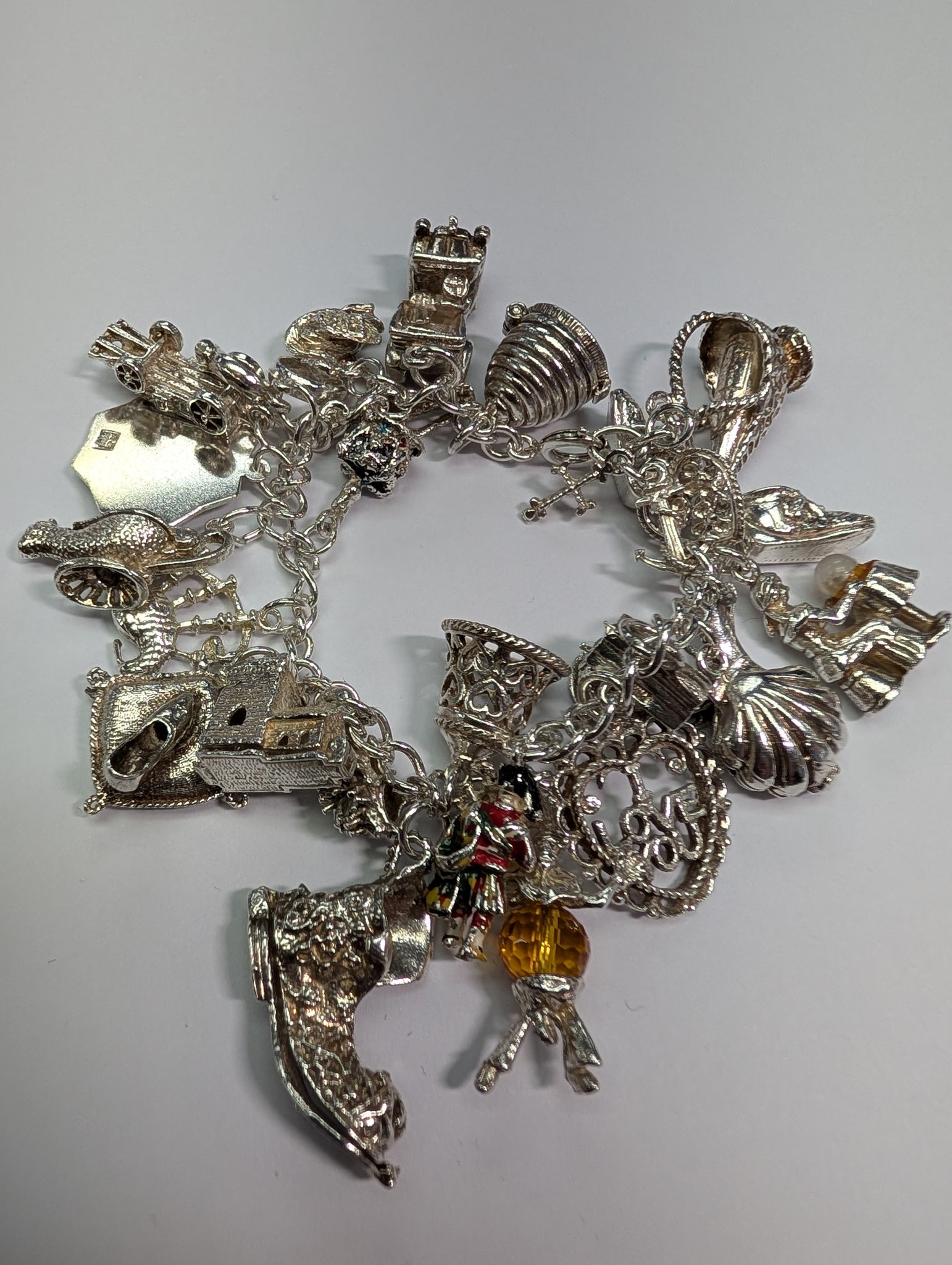HERE WE HAVE A VINTAGE STIRLING SILVER CHARM BRACELET. THIS IS HALLMARKED 925 AND WEIGHS 80.12G ** FOR ANY QUERIES PLEASE CALL OUR PRESTON STORE DIRECT MON-SAT 01772 204889