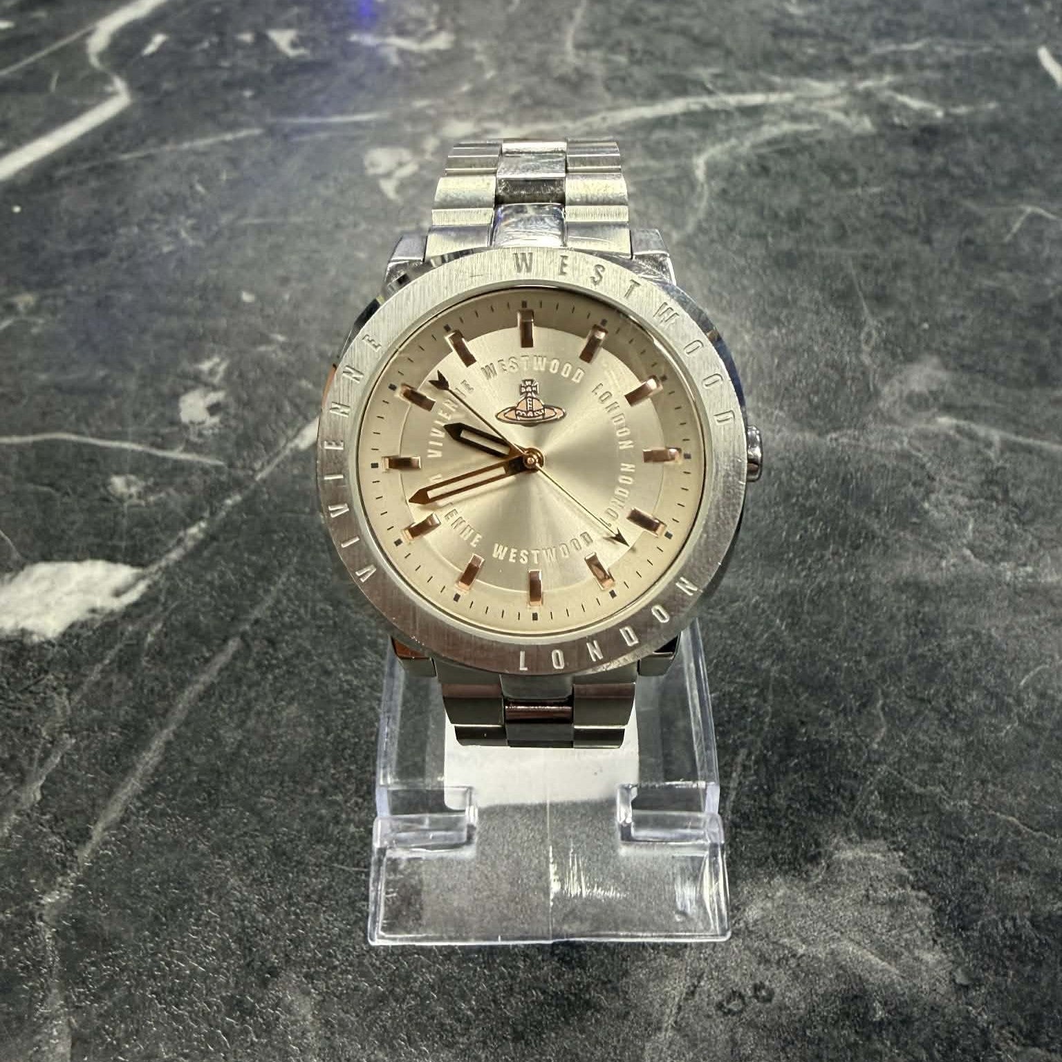 Vivienne Westwood VV228WGSL Ladies Watch This has been fully tested and is in good working order. This is a pre-owned item and does have a few marks/scratches etc. Please note that the battery does need replacing. This does not come boxed however it will be very well wrapped for delivery! Free UK Delivery Any item over £50 will be sent out Royal Mail Special Delivery or Fedex (depending on size and weight of package) for next working day delivery Any items under £50 will be sent out by Royal Mail 2nd Class for delivery between 3 and 5 working days All orders made before 11AM will be sent out the same working day Please note that deliveries to Ireland, Highland of Scotland and the Isles may take longer to arrive.